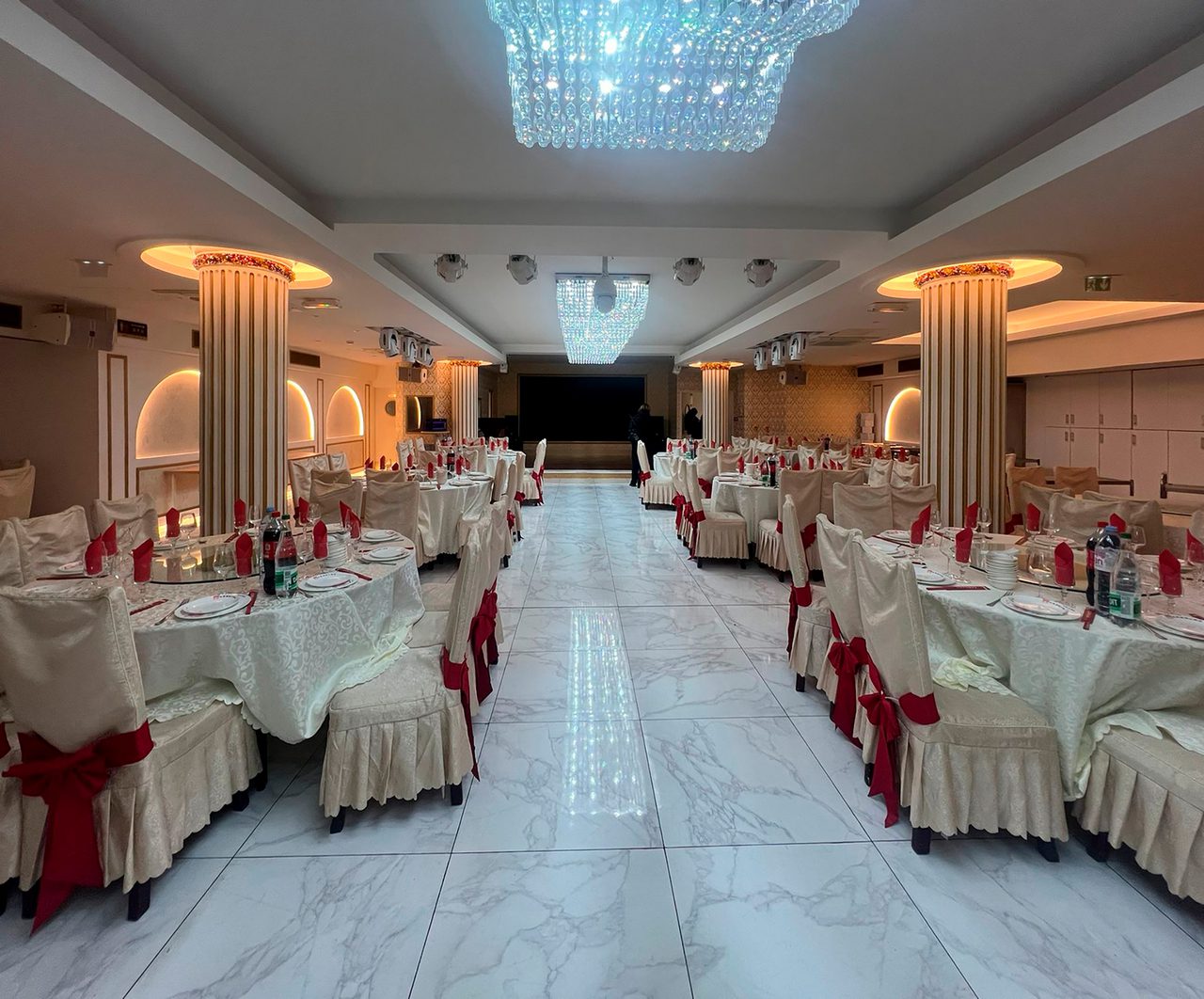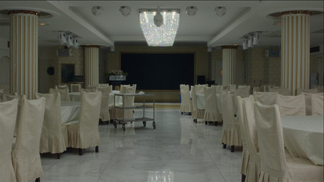 This ethos finds new institutional resonance with her receipt of the 2026 PONTOPREIS MMK, awarded by the Jürgen Ponto-Stiftung in collaboration with the MUSEUM MMK FÜR MODERNE KUNST. For her first institutional solo exhibition, Commaret has conceived “ZOLLAMTMMK”, a new film set in a banqueting hall suspended in temporal ambiguity: Ionic columns, inexpensive chandeliers, round tables dressed in cream cloth. It is both the morning before and the day after an event—an in-between time when the social script has dissolved but its traces linger. The space becomes a threshold, charged with anticipation and residue, where multiple generations move between cultures and realities.