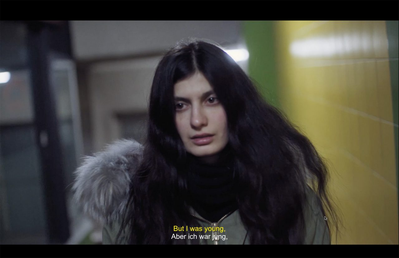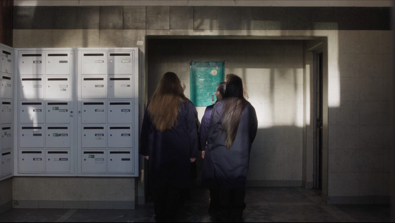 This affinity with myth and folklore aligns her work with the tradition of Latin American magic realism, though she translates its literary strategies into audiovisual form. Sound design plays a decisive role. Layered, echoing, hypnotic compositions create an atmosphere of suspension. In “Because of (U)”, a young girl repeatedly rings intercoms in empty corridors, searching for an absent addressee. The gesture is banal yet ritualistic, comic yet desperate. Reality dilates under the pressure of repetition.