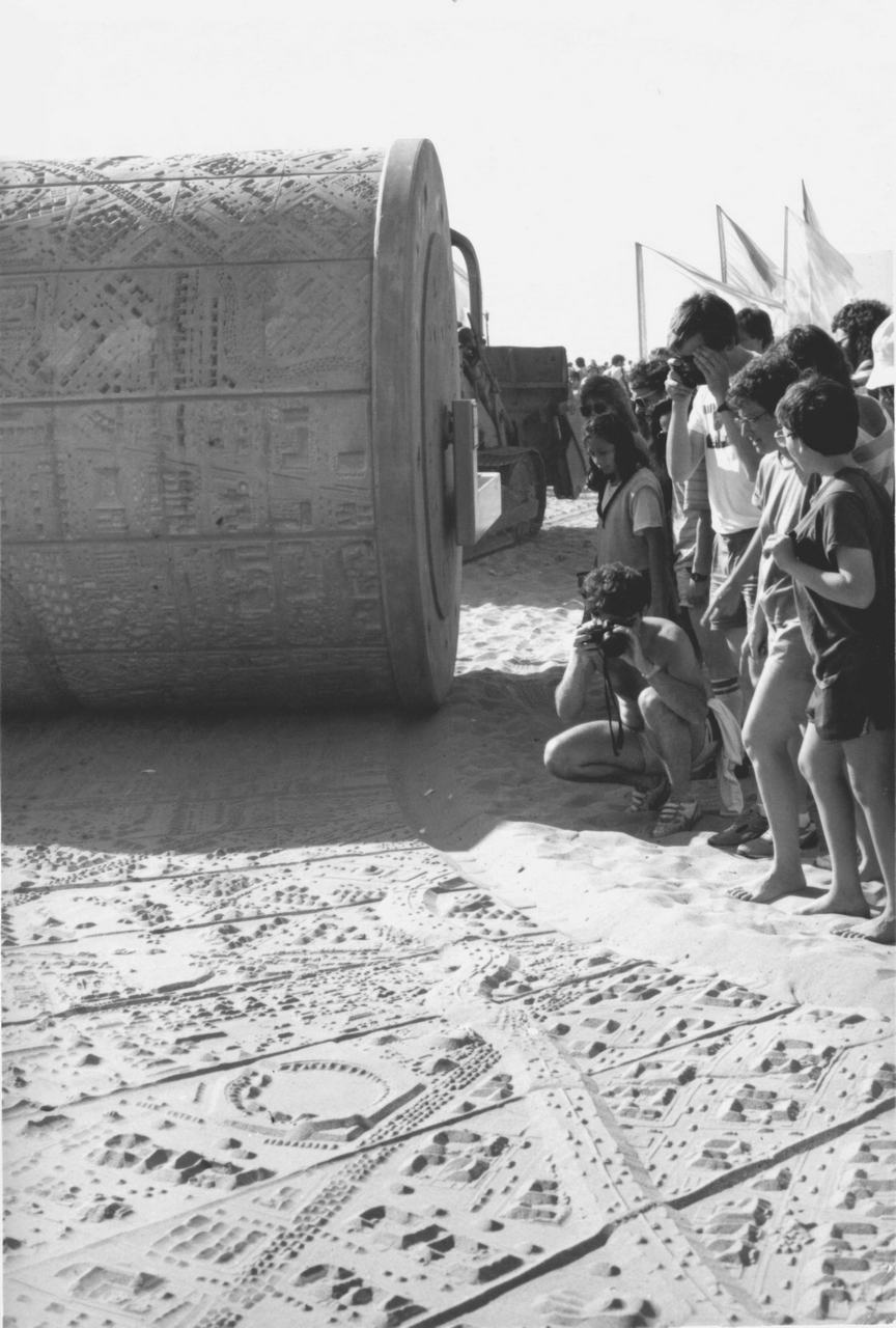 ___CC_1988_SantaMonicaArtTool_InstallView_Email.11540670780133679079 Carl Cheng, Documentation of Carl Cheng’s Santa Monica Art Tool and its installation Walk on LA (Detail), 1988, Santa Monica State Beach, © Carl Cheng, Courtesy the artist