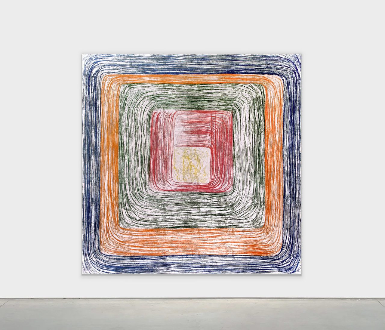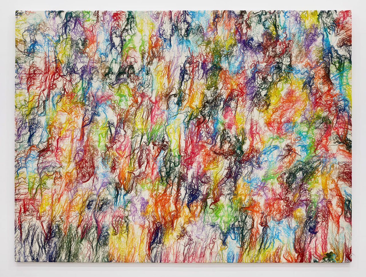 In her solo exhibition “Disobedient Thoughts”, Ghada Amer Amer presents a suite of new embroidered paintings alongside experimental sculptures in ceramic, bronze, and steel. Amer’s expansive, ambitious practice is a perpetual pursuit of new forms and methods of expression. Working across painting, sculpture, ceramic, and garden installation, Amer appropriates and reinterprets the predominantly masculine tropes of Western art history. Stridently, straightforwardly political in her approach, Amer reimagines the feminized materials and subjects of such histories in order to insert herself into the canon. In 1984, Amer entered art school in France intent on pursuing the study of painting—only to find herself routinely denied admittance to painting classes reserved for men. Vexed, she turned to history books determined to locate her own aspirations within a lineage of women painters—her efforts were in vain: the canon of western painting at the time was completely dominated by men. A few years later, on a trip to visit family in Cairo, Amer encountered a sewing pattern in a women’s magazine—and it sparked an idea: she could use embroidery thread on canvas as if it were paint. It presented both a practical and conceptual solution to the problem she had encountered in school: Amer knew how to sew—and by incorporating a traditionally feminine technique, she could also slyly take aim at the masculinist history of painting. By the early 1990s, Amer had established a material and formal language for painting with embroidery that she has continued to hone for the past 35 years. Onto the surface of the canvas, Amer embroiders spare images—often borrowed from pornography—of women in moments of ecstasy, pleasure, and tenderness. With the excess thread from these drawings, Amer creates abstract compositions that frequently allude to the work of famous male painters whose work she has long admired. Amer presents her most ambitious embroidered paintings—in both scale and process—to date in the exhibition. With The “Lilly Puddle” (2025) and “The Ladies of Giverny” (2025) Amer refers to Claude Monet’s light-infused water lilies and sheaves of grain. With “The Grid of 2025” (2025 Amer alludes to the sharp geometries of Piet Mondrian, Kazimir Malevich, or a litany of modernist painters committed to investigating the grid. “My Homage to the Square 1” (2025) and “My Homage to the Square 2” (2025) quote Josef Albers’ series of more than a thousand “Homage to the Square” paintings. In all of these works, the referential compositions of excess threads—which are attached to the surface of the painting with a gel medium—obscure the drawings of women beneath, a subtle but intentional nod by Amer to the ways in which women have been obscured from art’s histories. In 2014—following forays into garden installations and metal sculpture—Amer became interested in ceramic. Experimenting with the medium under the tutelage of Adam Welch at Greenwich House Pottery in New York, Amer created a new body of work, the “Thoughts” from the scraps created in the process of making her painted ceramic slab works. With her left hand—her nondominant hand—Amer sculpts the clay scraps according to instinct and intuition, a process akin to the automatic writing and drawing favored by the Surrealists. The resulting sculptures are twisting, contorting forms—which the artist finishes in brilliant chromatic hues, continuing her endless pursuit of painting. For the exhibition, Amer has translated these thoughts into cast bronze and steel—a process that has sent her to Mexico, China, and upstate New York to consult with expert metal founders to achieve the form, colors, and textures she sought. The resulting “Thoughts” far grander in scale than those made in ceramic—embody Amer’s latest foray into expanding her vocabulary of expression. Throughout her career, Amer has constantly sought subversion: an underlying, simmering rage about the place of women in history, in art, and in society has driven her to persistent, perpetual investigation and creation. For more than 35 years, Amer’s practice has followed a constant thread of disobedient thoughts, one following the next, all in pursuit of painting—even, as curator Susan Thompson notes, she has been deferred and redirected. Amer has mastered this subversion—drawing women into the fold of all manner of artmaking through imagery, through material, through form, through message. Yet, while Amer’s work is stridently political and doggedly disobedient, it also revels in hope, beauty, and freedom—and a deep, abiding love for the history of painting itself.