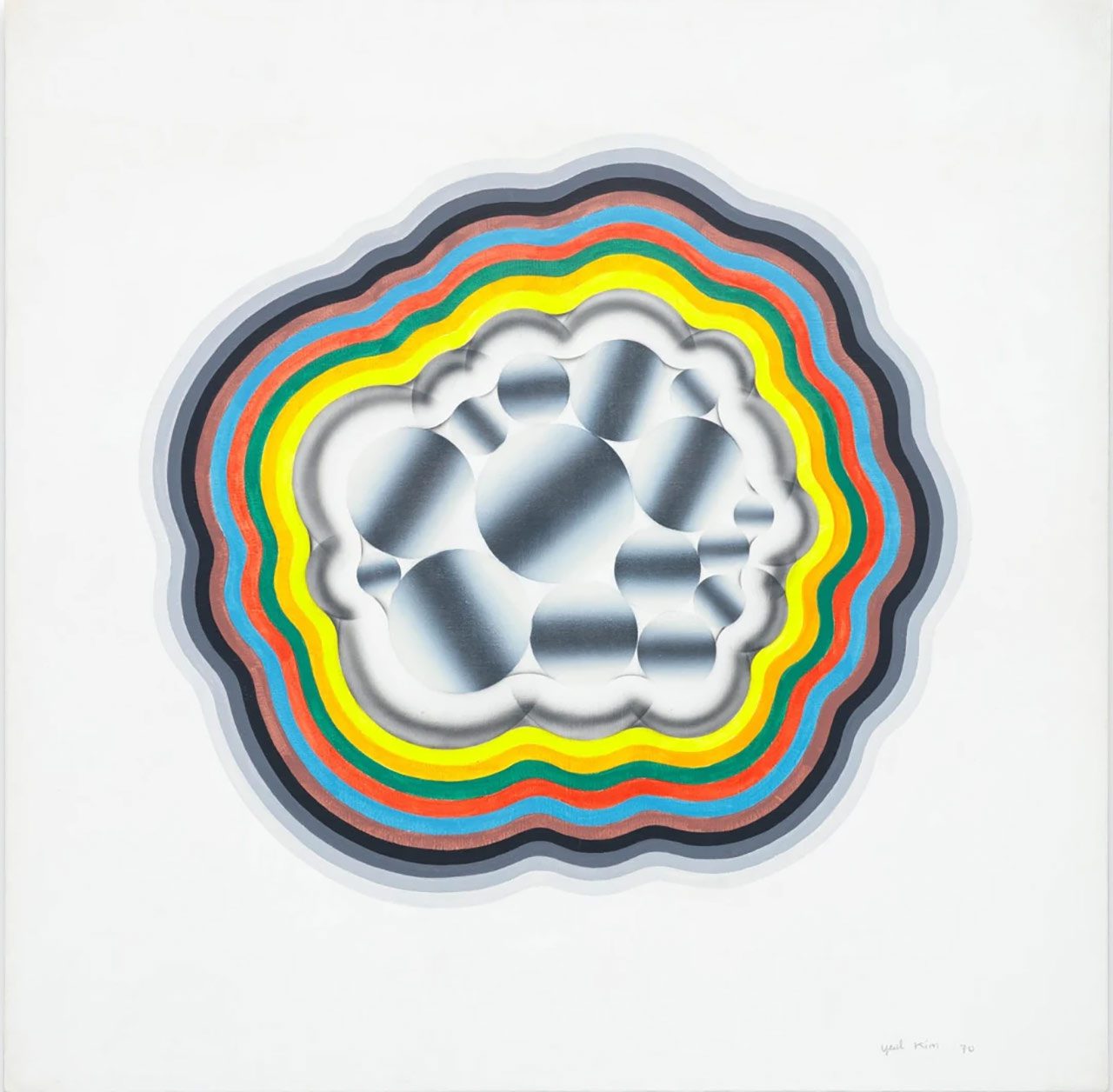 Photo: Kim Tschang-Yeul, Événement de la nuit, 1970, Oil on canvas, 27 5/8 x 27 5/8 inches, 70 x 70 cm, Courtesy Tina Kim Gallery