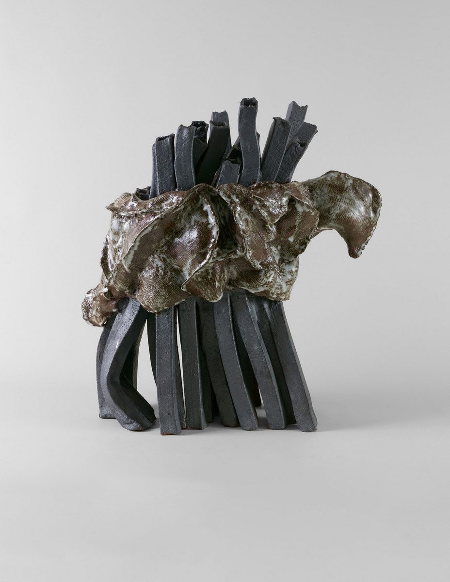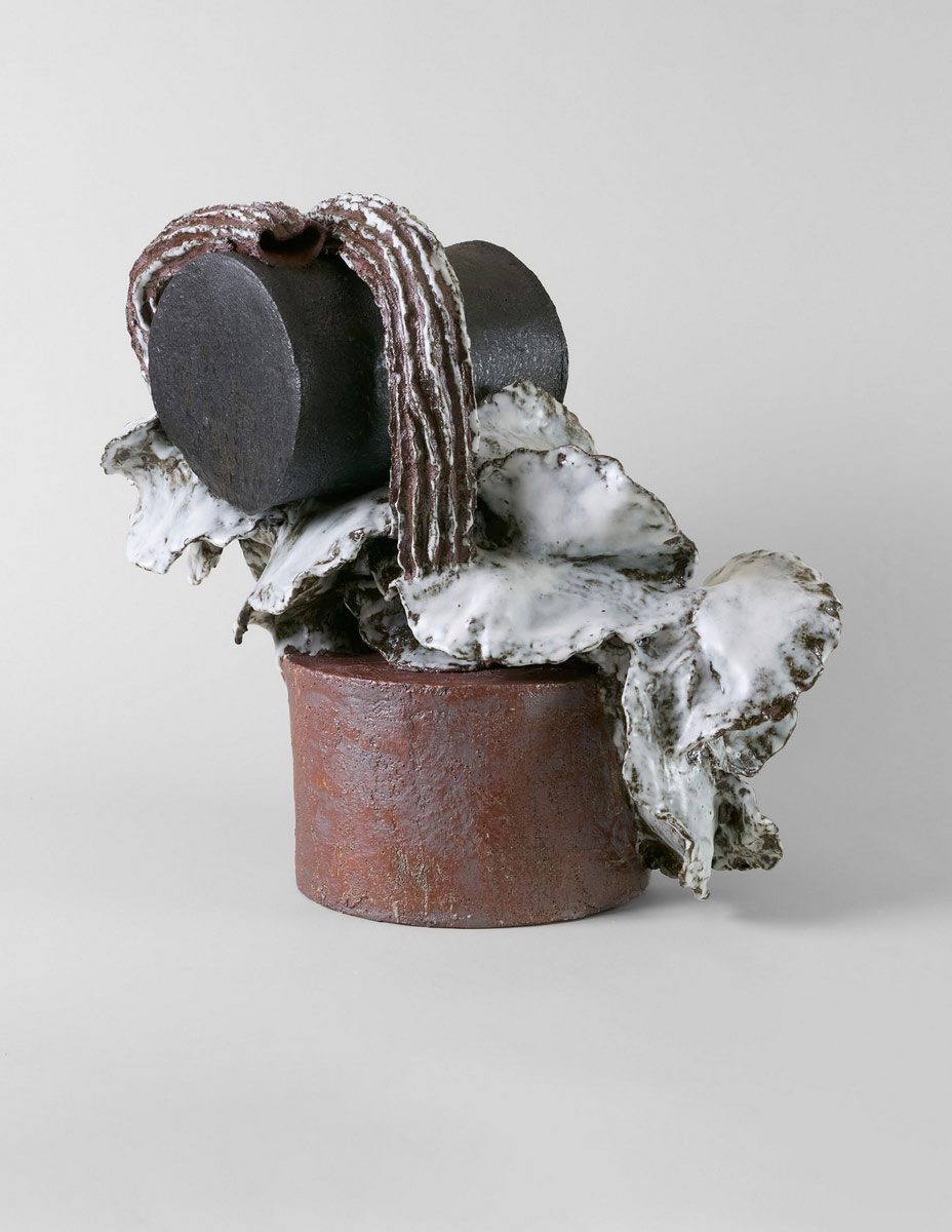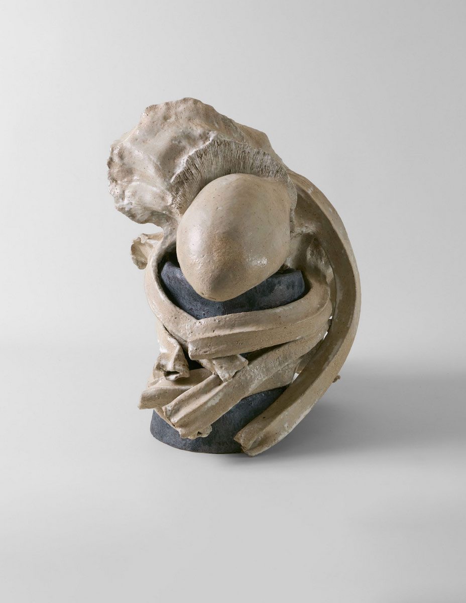 Photo left: Nathalie Khayat, CREAK, 2025, Glazed stoneware, 16 x 19 1/2 x 16 1/2 inches, 40.6 x 49.5 x 41.9 cm, © Nathalie Khayat, Courtesy the artist and Marianne Boesky Gallery. Photo right: Nathalie Khayat, THE DEVOURING OF YOU, 2025, Glazed stoneware, 21 1/2 x 23 x 19 1/2 inches, 54.6 x 58.4 x 49.5 cm, © Nathalie Khayat, Courtesy the artist and Marianne Boesky Gallery