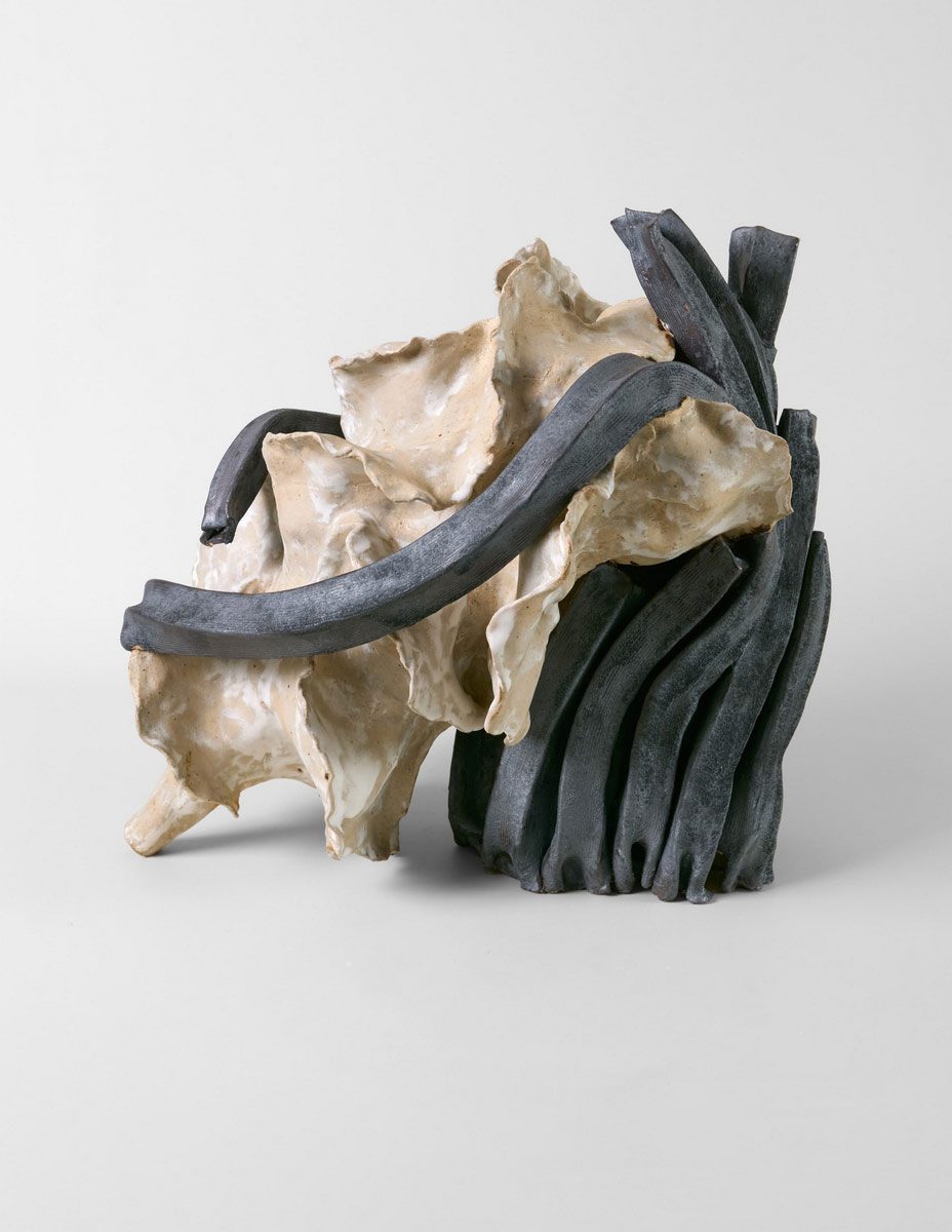 For “Unfolded Proximities” her debut New York solo exhibition, Nathalie Khayat presents a suite of new sculptures that expand the very possibility of expression in clay. Khayat harnesses the material properties of clay to examine the poetic tensions between structure and fluidity, containment and release, and fragility and endurance in objects infused with reminders of human ritual. Through an intuitive dialogue with clay, Khayat constructs sculptural forms that oscillate between architectural precision and organic vulnerability. With “Unfolded Proximities”, Khayat unleashes the sculptural potential of her material, marking a significant shift in her practice. While the artist’s work has long occupied a liminal space between function and form, Khayat’s newest body of work embraces— and prioritizes—clay’s capacity for emotional resonance over use. Incorporating extruded, hand-built, and wheel-thrown elements into her work, Khayat explores the fragile, transformative spaces where forms meet and boundaries dissolve. Throughout the exhibition, belts cinch clustered, hollow pillars in a tense embrace while wheel-thrown vessels cling to rigid supports as if grafted. In others, undulating petals and reef-like growths cleave to solid, geometric forms that bear faint traces of their functional histories— handles with no spouts, bowls and plates flung to their sides and flipped upside down. The seams of these sculptures— once stark divides where fluid, organic forms encountered exacting supports— become sites of fusion, as bodies and memories dissolve into one another. Negotiations rather than collisions, these quiet convergences attest to the intimacy of coexistence and entanglement as a force for altering identity. Khayat’s process begins with emotional or formal intentions—a spike articulates desire, a tube disrupts symmetry or adds height. But clay, the artist says, insists on its own organic logic, and nature seeps in unbidden: curves remember the weight of water; hollows echo unseen nests, and the material, despite itself, recalls the armor of crustaceans or the reach of deep-sea tendrils. “It is less that I reference nature,” Khayat says, “and more that nature persists in finding its way back into the work. Even in abstraction, we cannot escape its morphology”, The exhibition is deeply informed by place. Beirut is a city at crossroads, a city perpetually on the brink—of East and West, of history and future, of destruction and rebirth—and this persistent threat of cataclysm looms large in Khayat’s work. “My city,” Khayat says, “has been on the verge of collapse for most of my life. We dream, we imagine, we plan, we build knowing that it can all disappear within a fraction of a second.” Clay, for Khayat, embodies the same contradictions as Beirut. Fragile but enduring, clay holds memory and metaphor, finding its form over time and under pressure. As its title suggests, “Unfolded Proximities” is a process of revelation, growth, and transformation in the in-between spaces.