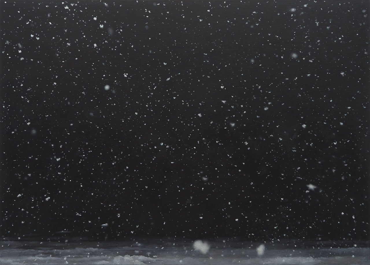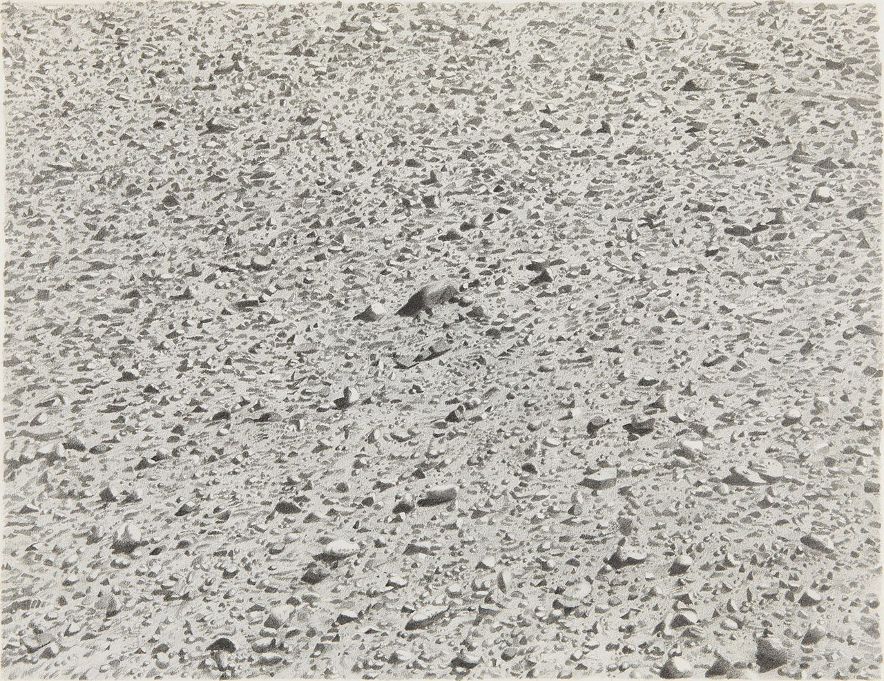 Between 1968 and 1992, Celmins worked almost exclusively in drawing. She turned to photographs—both found and self-taken—as her primary source material, capturing the intricate textures of moon craters, desert floors, ocean waves, and cloudscapes. Her lunar drawings were inspired by photographs from the late-1960s U.S. space missions, which brought distant, otherworldly terrain into everyday life. By 1973, she had begun her now-iconic series of galaxy drawings, based on NASA telescope images, further expanding her exploration of spatial ambiguity and visual depth. Her experiences in the deserts of California, Nevada, and New Mexico deeply informed her sensibility. Celmins sought to convey the sense of infinite stillness and timelessness that these vast, empty landscapes evoked. In the late 1970s, this exploration of perception and illusion took a sculptural turn with “To Fix the Image in Memory I–XI” (1977–1982). In this pivotal work, Celmins cast eleven stones collected in the desert in bronze and painstakingly painted them to be nearly indistinguishable from their natural counterparts—subtly challenging the viewer’s understanding of reality and replication. Celmins’ use of source material—as photographs or found objects—serves not as a blueprint for reproduction but as a springboard for deeper inquiry. Her artworks, whether graphite on paper or oil on canvas, are laboriously constructed through countless layers. Rather than photorealism, they embody a tactile process of re-creation—an attempt to render the incomprehensible, from cosmic expanses to natural minutiae, tangible by hand. In 1992, she encountered illustrations of spider webs that sparked a new body of work. Drawn to their fragile geometry and meditative complexity, she produced a series of paintings and charcoal drawings that continued her fascination with surface intricacy. This meditative quality persisted in later works: close-up renderings of textured objects—a Japanese book cover, the worn enamel of a Korean vase, the weathered surface of an old slate, and an eroded seashell. Each painting offers a poetic reflection on time, memory, and material decay. The exhibition culminates in Celmins’ most recent and largest works: monumental paintings of snow falling through the night sky. Based on photographic images of snowflakes illuminated in darkness, these canvases convey a profound silence and a deep sense of awe, invoking the eternal and the ephemeral in equal measure. Complementing the exhibition is “Vija”, a short film by renowned filmmakers Bêka & Lemoine. In this intimate, spontaneous portrait, Celmins opens the doors to her studio and the drawers of her archive, sharing insights into her lifelong artistic journey. Over 30 minutes, viewers are invited into the rich inner world of one of the most distinctive and quietly radical artists of our time.