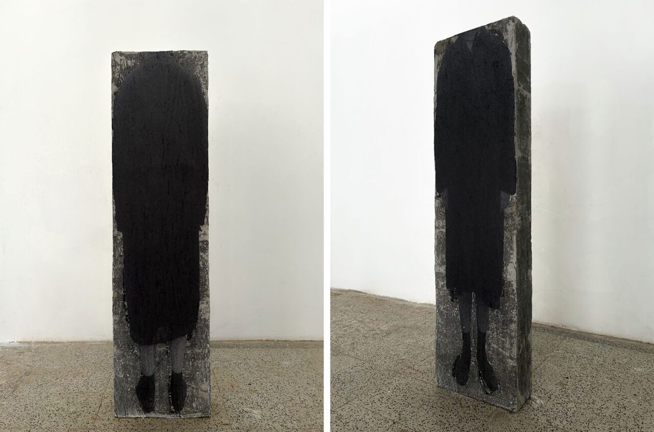 Yasemin Erturan’s practice is shaped by the relationship she builds between the wit- nessing capacity of the visual and the perception of space. In her archive-based re- search, visual recordings, written notes, surface details, and fleeting encounters often evolve into central elements of her works. Moving across sculpture, photography, video, and installation, her productions investigate how personal and collective data can be re-visualized and spatially re-contextualized. In “Passing by the house of my first arrival”, Erturan takes an imprint of a surface be- longing to a different architectural space and reworks it onto a concrete block. The image and its ground are displaced, detached from their context, and repositioned. The anonymized body transferred onto the surface represents a physically and con- textually reduced image. The absence of a head emphasizes the incompleteness of the figure and underscores the limitations of representation. The concrete surface becomes more than a mere carrier—it transforms into a layered structure that holds the physical traces of the place it once belonged to.