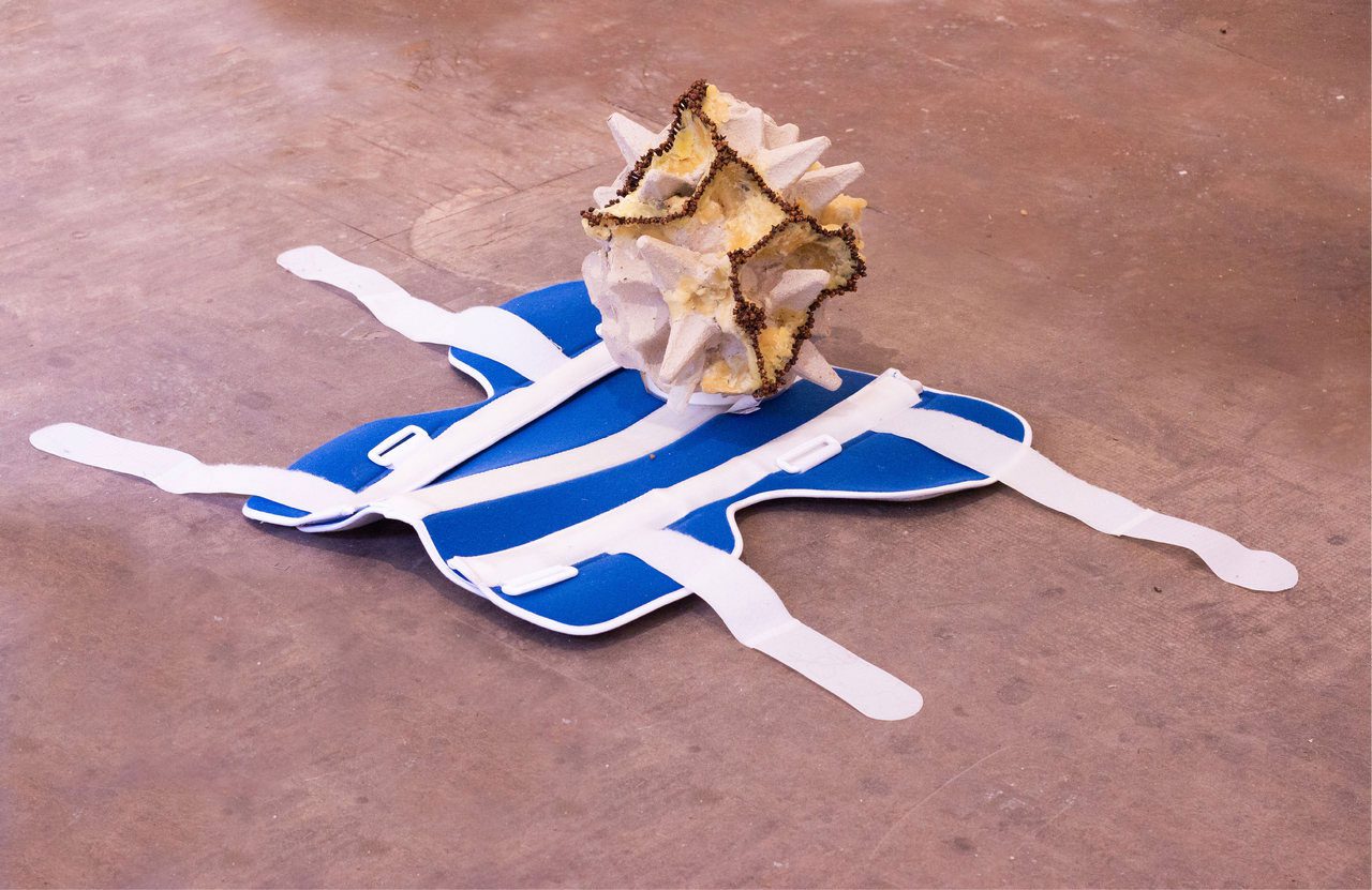 Dilan Perişan centers their practice around concepts of self, otherness, and memory. The notion of otherness is approached not only in relation to human communities but also through objects, waste, and ecological beings. They adopt an approach that blurs Cartesian binaries such as object-subject, nature-culture, and life-death. Perişan engages with objects deemed useless, everyday remnants, and ex-voto items. This personal archival relationship with materials allows for the emergence of new narratives and alternative temporalities. “Soft Limbo” is an installation formed from the transformations of medical and domes- tic waste. These wastes represent not only the memories of the autoimmune body, whose natural defense system mistakenly attacks its own cells, but also paradoxical bodies that actively reproduce it. The work questions the permeability of the body, as well as the boundaries between healing and collapse, and between object and organism. Each form appears like a support while simultaneously bearing traces of a leak. Through this constructed structure, the artist attempts to create a system that is dysfunctional yet living; fragile yet impossible to fix in place.