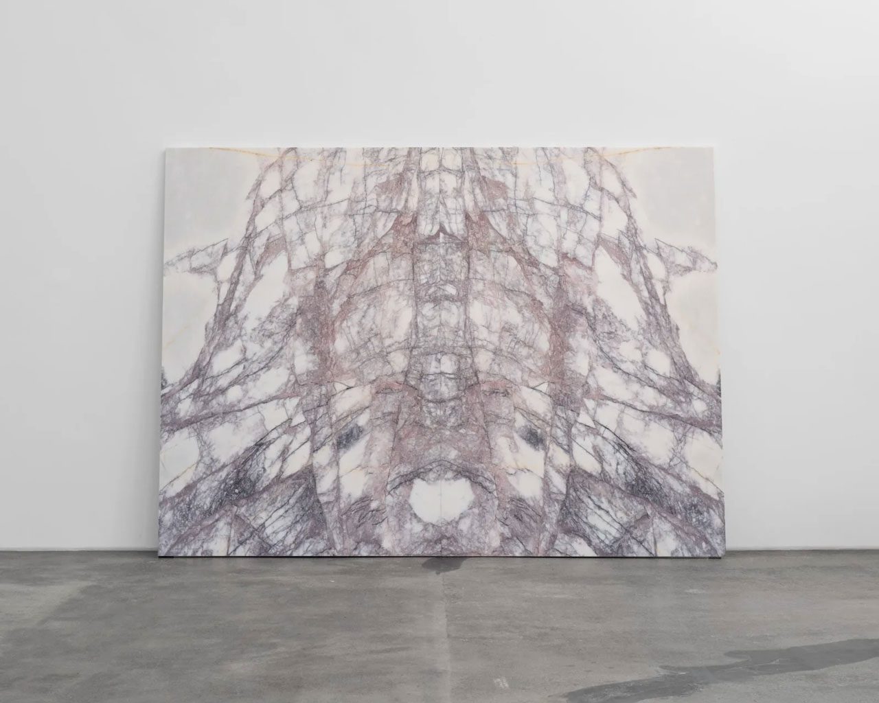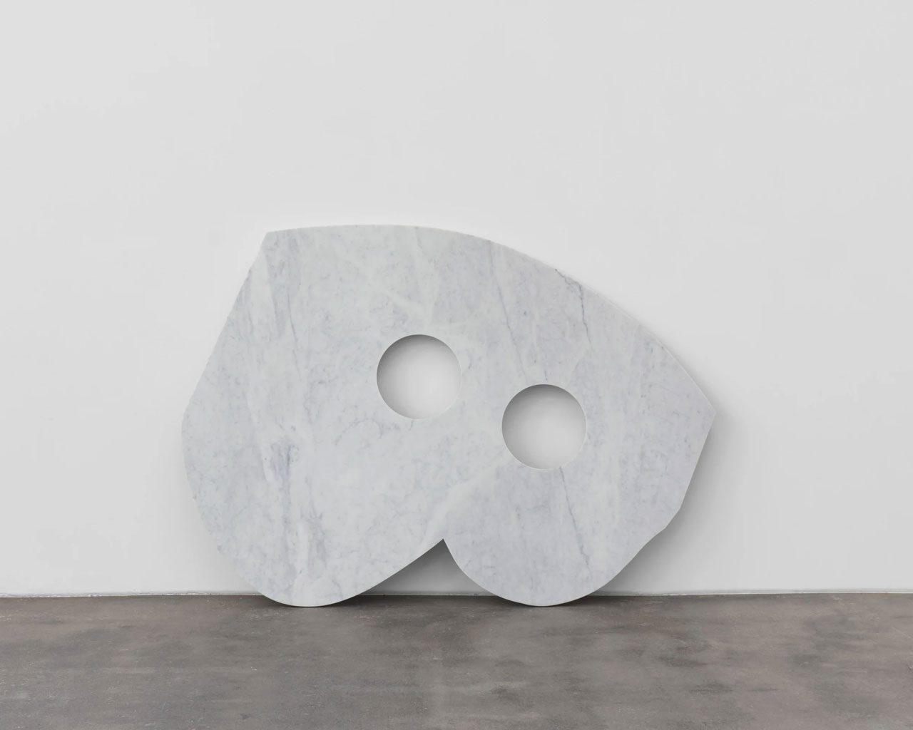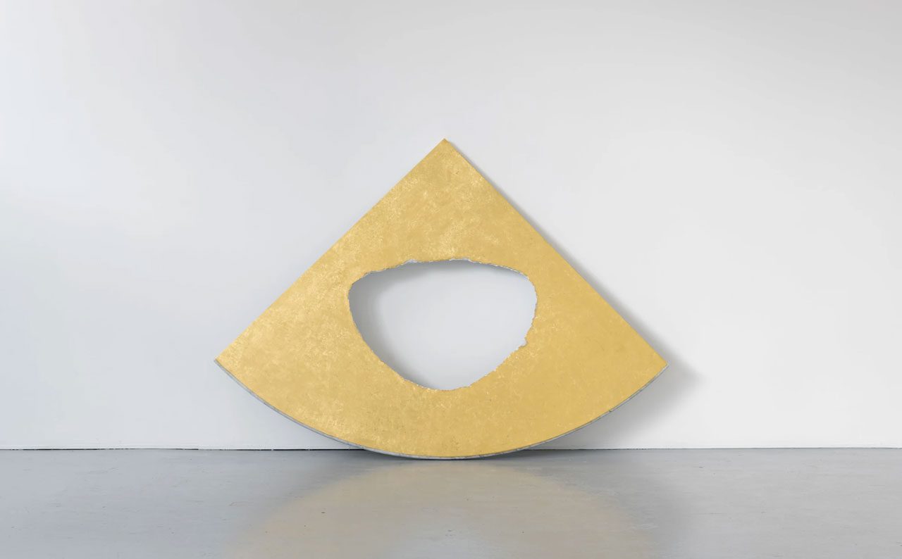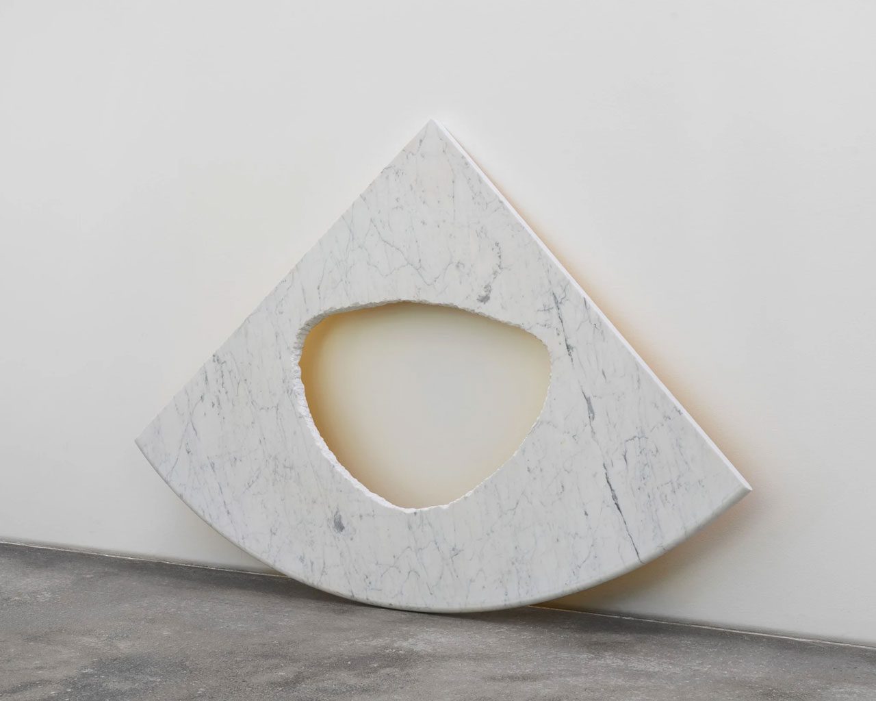 Photo: Jone Kvie, Marble Slant, 2023, Carrara marble and gold leaf, 120 x 120 x 4 cm, 47.24 x 47.24 x 1.57 in, Edition of 3 plus 1 AP, © Jone Kvie, Courtesy the artist and NILS STÆRK Gallery
