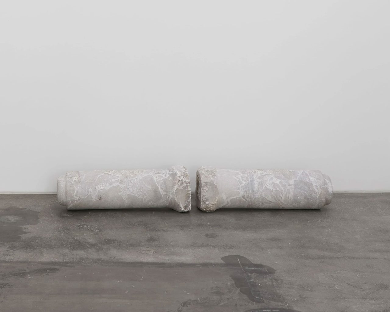 Jone Kvie’s practice is defined by the translation of abstract ideas into material form. His sculptures reduce complex scientific, philosophical, and cultural references into shapes that remain immediate and physical, insisting on their presence in space. Kvie’s materials—ranging from basalt and marble to steel, concrete, and organic matter—are chosen for both their structural characteristics and their capacity to carry symbolic weight. What emerges is a body of work situated at the intersection of art and science, where matter becomes a means of reflecting on the limits of human perception and knowledge. The exhibition “salthour” at NILS STÆRK demonstrates Kvie’s continued investigation into time, materiality, and human existence. Here, the sculptures operate as mediators between geological history and the present moment. Ancient substances and fossil traces are combined with altered everyday objects, producing forms that make visible the continuity between the earliest conditions of the Earth and contemporary life. Rather than illustrating this relationship, the works enact it: they position viewers within a continuum where the human is inseparable from longer temporal and material processes. In recent years, Kvie has shifted his focus toward the encounter between sculpture and the human body. His engagement with basalt reflects this change—selected not only for its geological significance but also because basalt dust is non-toxic, foregrounding the material’s physical relationship to the body. Minimal interventions leave the stones close to their natural state, while their combination with remnants of human activity—such as rusted fence posts—foregrounds the tension between natural formation and cultural trace. His newer works in marble, steel, and concrete extend this logic, drawing attention to the ways human presence is inscribed in the landscape and in the materials that shape daily life. Earlier projects positioned Kvie’s practice within a broader cosmological frame, referencing meteors, mineral structures, and stellar phenomena. These works resist clear classification, oscillating between scientific fact, cultural imagination, and art historical resonance. Central to his approach is a commitment to ambiguity: his sculptures rarely resolve into definitive meanings but remain open, suspended between the known and the unknown. What unifies Kvie’s practice across its phases is a focus on the physical encounter with sculpture itself. His works are not only vehicles of reference but objects that must be experienced through their material presence, weight, and scale. They resist didactic interpretation, instead generating a space for reflection in which viewers are confronted with the interdependence of matter, time, and perception. In this, Kvie underscores the potential of sculpture to exceed representation and to become a site where knowledge, uncertainty, and sensory experience converge.