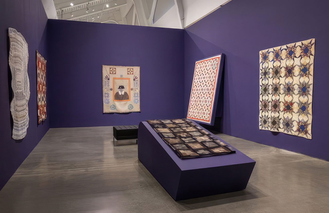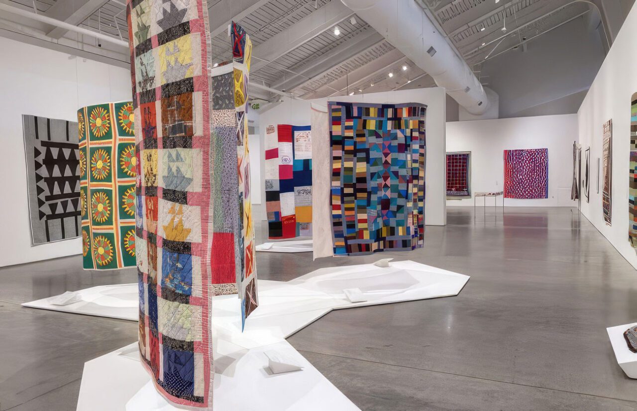 Photo: Installation view: “Routed West: Twentieth-Century African American Quilts in California”, Berkeley Art Museum and Pacific Film Archive, June 8–November 30, 2025. Photo by Daria Lugina