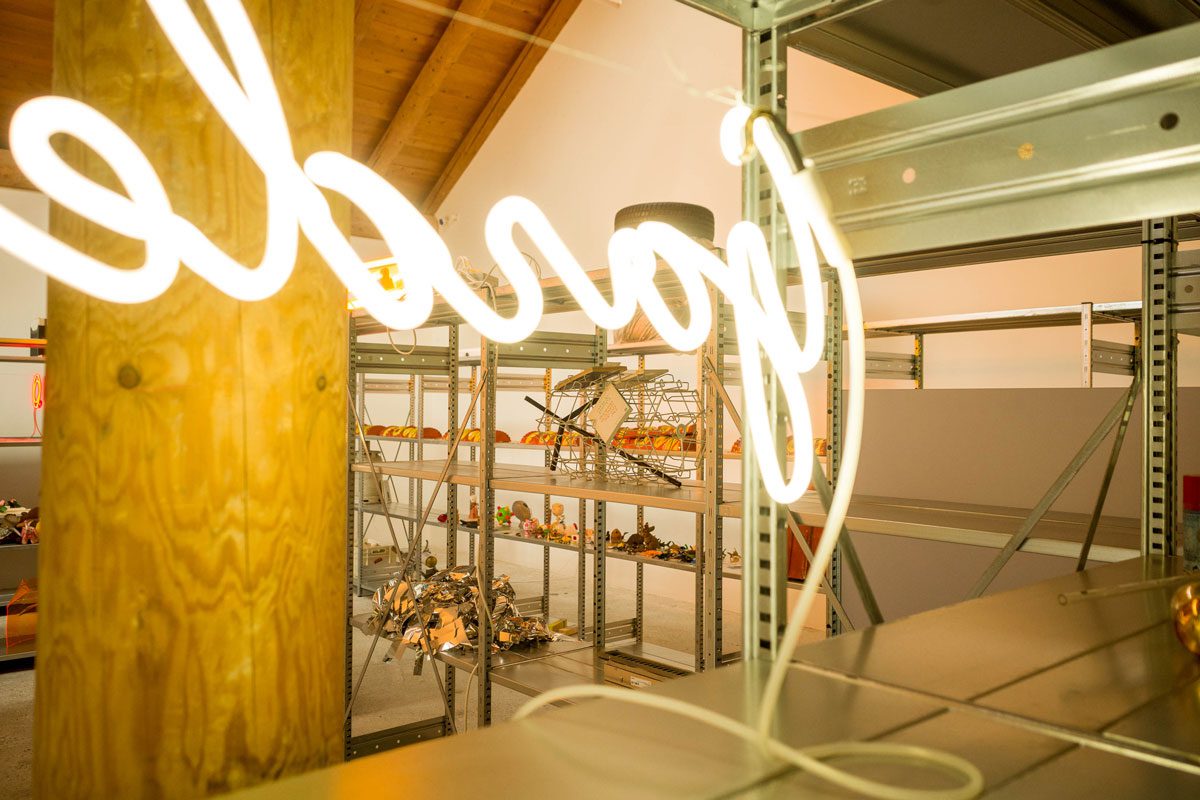 From his earliest performances with Groupe Ecart—a collective he co-founded in Geneva in 1969 that combined exhibition-making, a bookshop, and publishing activities— John M Armleder absorbed the irreverent, anti-establishment spirit of Fluxus. Like his peers in that international network, he saw art less as an object than as an action, an attitude, a way of engaging the world. This ethos remains deeply present in his work today, whether in the form of a monochrome canvas, an installation of found furniture, or a sprawling, immersive environment. Armleder’s art is an ongoing experiment with systems of order and disorder, irony and sincerity, chance and control. It is within this continuum that “Quicksand IV” (2025) emerges: the latest installment in a series of installations that Armleder has been developing for over a decade. Commissioned specifically for Country SALTS, a converted barn in the rural village of Bennwil, Switzerland, the work takes the form of a monumental shelving structure laden with a dizzying accumulation of objects. Seen from a distance, it resembles a storage unit, a studio in flux, or a material archive; up close, it unfolds as a constellation of associations, a theatre of objects in conversation with one another. At first encounter, the sheer volume of things overwhelms: shelves groaning under the weight of books, toys, plexiglass sheets, car parts, artificial plants, decorative trinkets, lights, industrial detritus, fragments of earlier works, and objects of uncertain status. The display may appear random, yet it is in fact organized according to an invisible score devised by the artist. This tension—between apparent chaos and underlying order—has long animated Armleder’s practice. Like John Cage’s use of chance operations in music, Armleder develops systems that resist mastery: structures that generate pattern without dictating meaning. In “Quicksand IV”, the objects themselves are neither simply artworks nor mere debris. They exist in a liminal state, oscillating between potential and residue, between archive and invention. Some are relics of past projects; others are surplus materials from the studio; still others are found items collected for reasons that may be opaque even to the artist. Each carries a fragment of narrative, a shard of memory, or a clue to an unrealized idea. Taken together, they form an open-ended portrait of the artist—not through a single iconic gesture, but through accumulation, contradiction, and excess. To situate “Quicksand IV” within Armleder’s career is to see it as both a culmination and a continuation. In the 1980s, Armleder became known for his “Furniture Sculptures,” uncanny juxtapositions of paintings with chairs, lamps, and other household items that collapsed distinctions between art object and everyday life. These works anticipated what critics later described as “commodity sculpture,” a tendency to explore the circulation of objects in consumer society. Yet unlike more austere practitioners of institutional critique, Armleder’s approach always carried a note of humor, absurdity, and generosity. The “Quicksand” series extends this trajectory by embracing the format of the exhibition itself as a sculptural medium. Each iteration—whether in London, Geneva, Brussels, or now Bennwil—responds to its site, while remaining in dialogue with its predecessors. The result is less a fixed work than a living process, a structure perpetually recomposed. As Armleder has said: “Although a system, some form of order, is created, the idea that one can seal a definitive story remains impossible.”