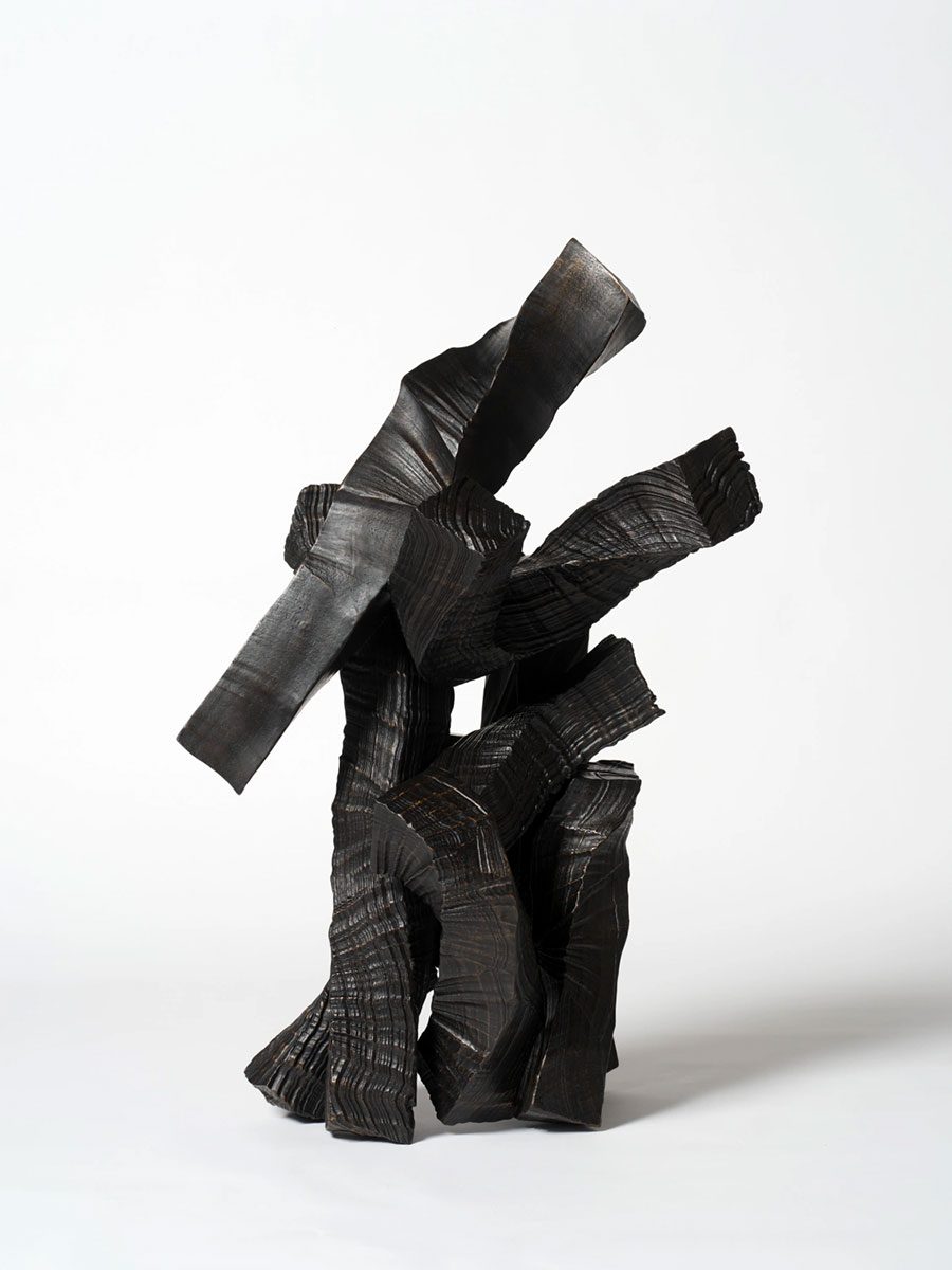 Lee Bae’s monochromatic practice is a formal and immersive journey into the abysses of blackness. Subtly blurring the lines between drawing, painting, sculpture, and installation, he has developed his abstract aesthetics across categories to imbue the noncolor with tangible depth and intensity. Charcoal, obtained by burning wood and used to revive fire, offers a powerful metaphor for the cycle of life that has further inspired him to expand his exploration to include the fourth dimension of time.