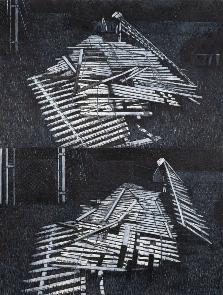 Photo: Willie Birch, Melting Snow #3, 2025, Acrylic and charcoal on paper, 60 x 90 in, © Willie Birch, Courtesy the artist and Fort Gansevoort