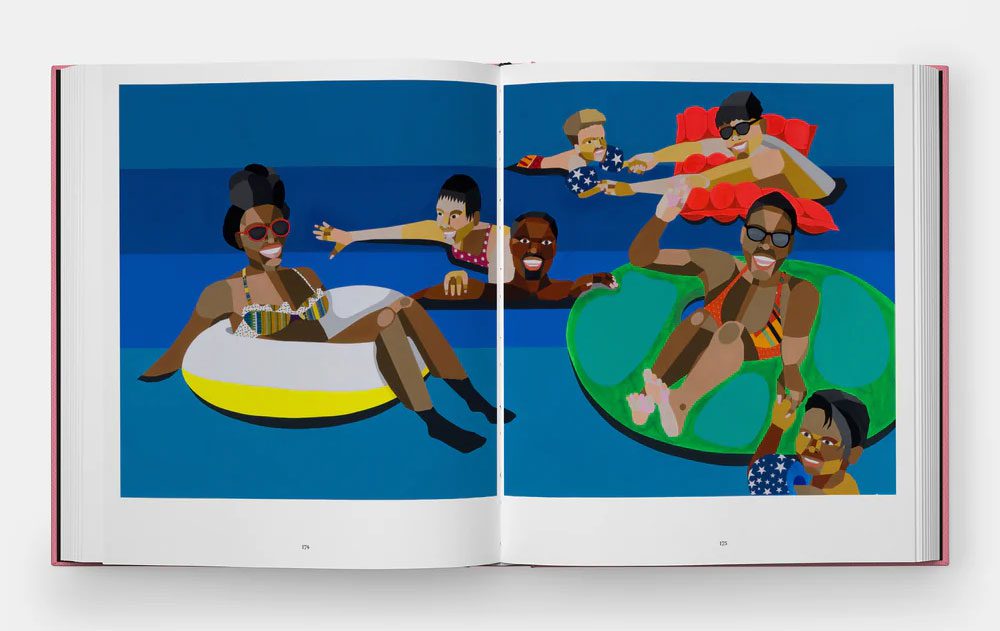 Derrick Adams has spent the past quarter century steadily emerging as one of the most distinctive voices in American art. Celebrated for his vibrant, collage-inspired paintings of people at rest and play, Adams creates images alive with color, rhythm, and layered meaning. Whether he is portraying quiet, familiar rituals or crafting sweeping cultural statements, his work radiates an energy that feels both contemporary and timeless. What sets Adams apart is his seamless fusion of present-day pop culture with the intellectual heritage of modernism. Built from bold geometric blocks of color, his compositions recall the crisp elegance of Alex Katz, the lush leisure of David Hockney, and the kinetic grace of Ernie Barnes, while remaining unmistakably his own. The result is art that dazzles the eye and rewards deeper historical reflection. Phaidon’s new monograph, “Derrick Adams”, is the first comprehensive book devoted to this groundbreaking artist. Encased in cloth with a tipped-on painting gracing the cover, it gathers four illuminating texts: essays by New York Times columnist Salamishah Tillet, ICA Philadelphia curator Hallie Ringle, and independent curator Dexter Wimberly, alongside an in-depth conversation between Adams and art-world veteran Sandra Jackson-Dumont. Together they offer a richly layered portrait of an artist who has reshaped the visual language of our time. Adams’s practice spans a remarkable range of media—painting, collage, photography, sculpture, installation, video, and performance. After earning his BFA from Pratt Institute in 1996, he became a gallerist at the pioneering Rush Arts Gallery, one of Chelsea’s earliest spaces devoted exclusively to Black artists. The exhibitions he organized and the community he nurtured there helped bring long-overdue attention to Black voices in a largely exclusionary art world. Even as he championed others, Adams was refining his own vision. He began as a performance artist and photographer before developing the collage and painting techniques that now define his career. Across portraits, social scenes, and allegorical tableaux, he foregrounds the everyday experiences of Black Americans—moments of joy, resilience, and collective celebration—rendering them with a vitality that continues to expand the possibilities of contemporary art. -Dimitris Lempesis