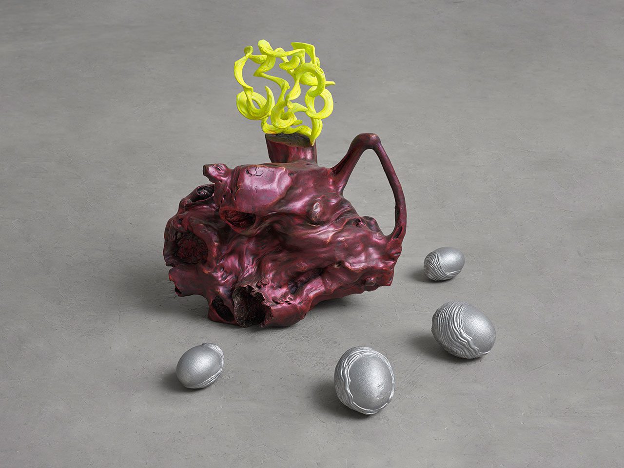This strategy of associative thinking — of creating meaning through unexpected conjunctions — situates Guan within a lineage of artists who challenge fixed categories of perception and value. Yet her work remains distinctly her own, marked by an interest in how images, technologies, and cultural artefacts circulate globally and become detached from their original contexts. In more recent years, Guan Xiao has turned her attention to the Chinese custom of displaying polished tree roots in domestic interiors — a practice with a long and complex history. Originating in the Warring States Period (474–221 BCE), root carving preserves the natural form of the wood, celebrating its organic beauty. Over centuries, however, this practice became both a marker of prosperity and a sign of aesthetic stagnation: a symbol of wealth that, through repetition, lost its vitality. In Guan’s hands, the tree root becomes a site of transformation. She reanimates it as a hybrid entity — part vegetal, part animal, part mechanical — that resists easy classification. These roots no longer serve as mere decoration; they mutate into sentient forms, suggesting growth, mutation, and metamorphosis. By combining handcrafted elements with mass-produced materials, Guan constructs a dialogue between the artisanal and the industrial, between inherited craft traditions and the relentless circulation of global commodities. “Teenager” returns to fundamental subjects — food, clothing, shelter — to meditate on questions of civilisation, progress, and spirituality. These universal necessities, reframed through Guan’s surreal vocabulary, become symbolic of the perpetual negotiations that define both adolescence and modern society. The teenager, poised between childhood and adulthood, is a figure of instability and potential — an emblem of becoming. For Guan, this “conflicted state” embodies the tension of a world suspended between devotion and restraint, ancient wisdom and contemporary desire. Her adolescent metaphor extends beyond the individual, reflecting a collective condition: a civilisation caught in perpetual adolescence, striving toward growth yet resistant to maturity, driven by consumption yet haunted by memory. The exhibition thus stages a philosophical inquiry into what it means to evolve — materially, culturally, and spiritually — in a time when progress itself feels uncertain. Through her richly imaginative sculptural language, Guan Xiao constructs a world that is at once playful and profound, humorous and melancholic. “Teenager”is not merely an exploration of youth, but a meditation on transformation — of bodies, materials, and societies. In confronting the contradictions of the present, Guan’s work offers a poetic vision of change: a space where the boundaries between object and subject, the human and the nonhuman, are continuously renegotiated. In this suspended state — between innocence and experience, myth and modernity — Guan invites us to dwell in uncertainty, to inhabit the ambiguous, and to rediscover the potential of not yet being fully formed.