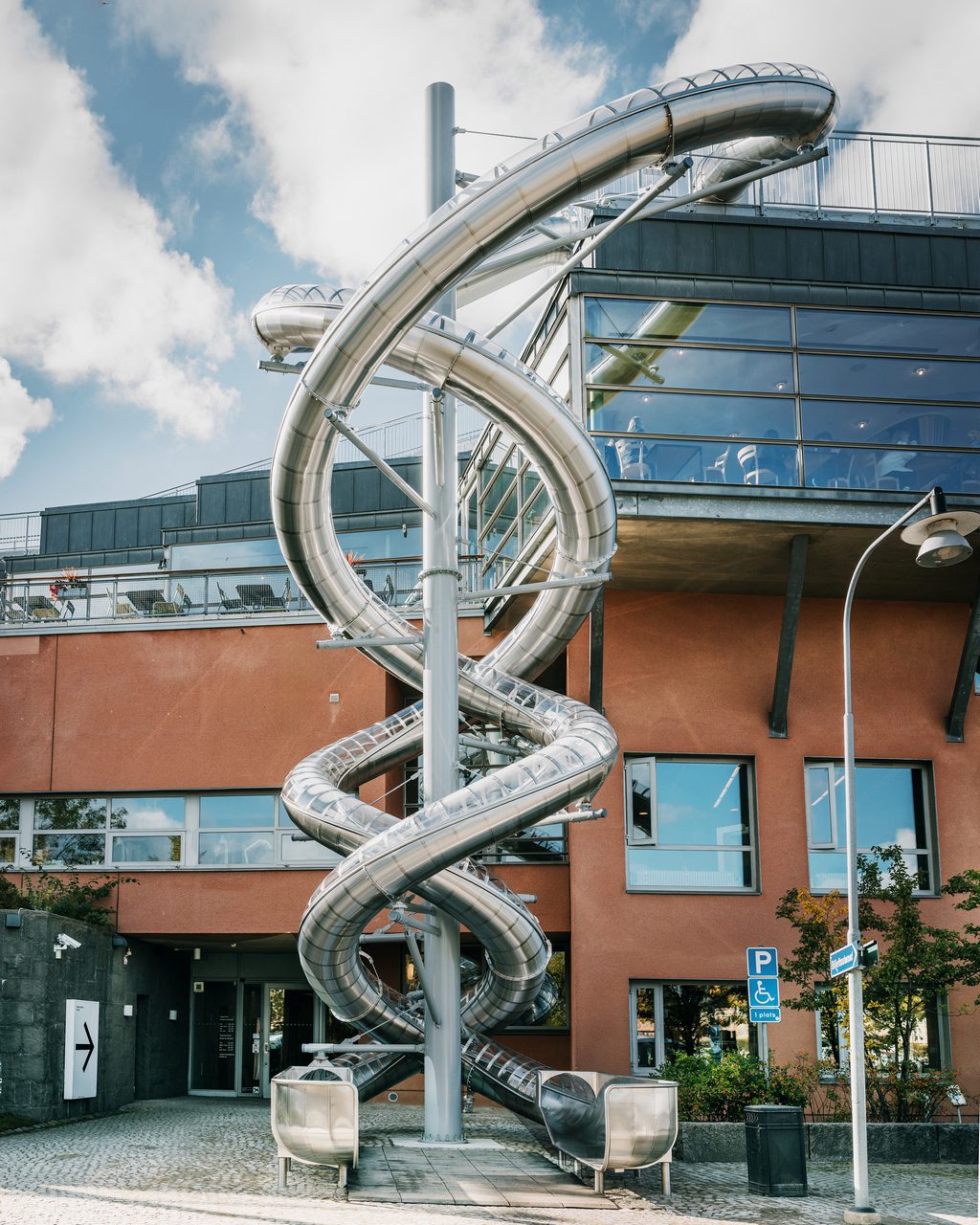 Carsten Höller was born in 1961 in Belgium, to German parents, and has lived an unusually transnational life. For the past 25 years, he has called Sweden home, while more recently dividing his time between Ghana and Italy. His artistic career was preceded by a rigorous scientific background: he earned a doctorate in biology, with a dissertation focusing on the ways insects communicate through scent. This early research into systems of perception, behavior, and interaction laid the groundwork for his later artistic explorations. In the early 1990s, Höller transitioned fully into art, bringing with him a scientific precision and curiosity that continue to inform his work today. Since 1998, slides of various forms have become a central motif in Höller’s practice. They have appeared as both temporary interventions and permanent installations across Europe and the United States—from museum exhibitions to urban public spaces. Each time, they have provoked a unique combination of wonder, playfulness, and philosophical reflection. “Stockholm Slides” is the latest and perhaps most striking manifestation of this ongoing exploration. Importantly, the work is not a temporary experiment but a lasting addition to the Moderna Museet environment. As part of the museum’s permanent collection, the slides have been granted a building permit valid for five years at a time, underscoring their role as a long-term intervention in the cityscape. From the outset, the museum envisioned this piece as something more than an exhibition object. It is an artwork that activates the audience in a concrete, physical way, while simultaneously redefining what a museum experience can be. For those who ride, it is a visceral journey through space, gravity, and emotion. For those who watch, it is a spectacle that transforms the museum into a stage of collective play and shared reactions. With “Stockholm Slides,” Carsten Höller once again demonstrates his ability to blur the boundaries between art, science, play, and lived experience. The work is not only a striking architectural intervention but also an invitation: to let go, to give in to movement, and to rediscover the exhilaration of uncertainty. In doing so, it offers a powerful reminder that contemporary art can be more than an object—it can be an event, an encounter, and an experiment in perception.