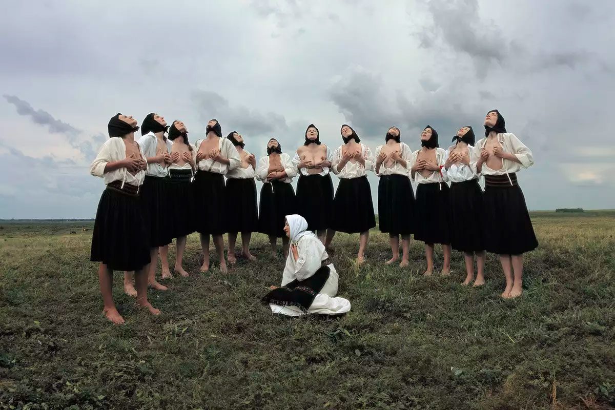 Drawing from the deep well of Balkan folklore and spirituality, Marina Abramović’s “Balkan Erotic Epic” stands as one of the artist’s most ambitious and transformative works. A large-scale, durational performance that fuses dance, song, and ritual, the piece immerses audiences in a living tapestry of eroticism, myth, and collective memory. Through this powerful work, Abramović revisits the spiritual and corporeal traditions of her homeland—rituals once performed to ensure fertility, to protect communities from misfortune, and to celebrate the sacred vitality of the human body. Born in the Balkans, Abramović has long been fascinated by the region’s rich and complex spiritual heritage. In “Balkan Erotic Epic”, she explores the intersection of the erotic and the sacred, excavating ancient mythologies that have survived through oral traditions, songs, and folk practices. These narratives—spanning from Romania to Greece, from Albania to Bosnia, and through Roma and Traveller cultures—reveal a worldview in which sexuality was a conduit to the divine, rather than a source of conflict or shame. In these societies, eroticism functioned as a cosmic language: a life-affirming force linked to fertility, weather, and nature’s cycles. Abramović’s work reclaims this understanding, questioning modern Western separation of the erotic from the spiritual. Through ritualized movement, sound, and embodiment, Balkan Erotic Epic reawakens the idea of the body as a sacred site of knowledge, transformation, and communion with the universe. Performed by more than seventy participants—including dancers, singers, and musicians—the work unfolds across thirteen visceral scenes, each rooted in a specific folkloric or ritual motif. The audience, free to wander the space, encounters intimate actions and moments of intensity. Among these, “Fertility Rite” evokes ancient rituals where participants merged human desire with the earth’s generative power. In “Massaging the Breast”, women perform rhythmic gestures over graves, awakening dormant energies and bridging life with death. Meanwhile, “Scaring the Gods” recalls the tradition of women baring themselves to the heavens in defiance of storms—an act meant to restore cosmic balance.