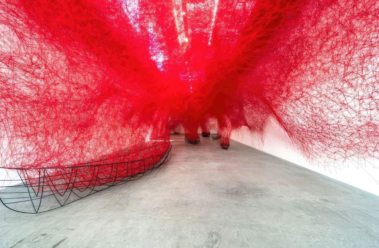 Photo: Shiota Chiharu, Uncertain Journey 2016/2019 Metal frame, red wool Dimensions variable Installation view: Shiota Chiharu: The Soul Trembles, Mori Art Museum, Tokyo, 2019 Photo: Sunhi Mang Photo courtesy: Mori