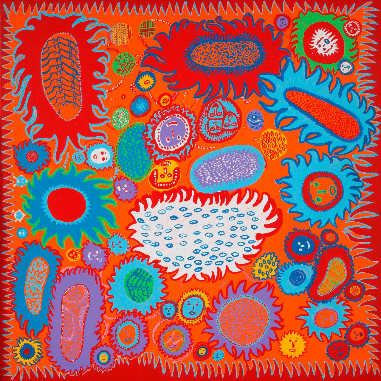 Yayoi Kusama’s work has transcended two of the most important art movements of the second half of the twentieth century: pop art and minimalism. Her highly influential career encompasses paintings, performances, room-size presentations, outdoor sculptural installations, literary works, films, fashion, design, and interventions within existing architectural structures, which allude at once to microscopic and macroscopic universes.