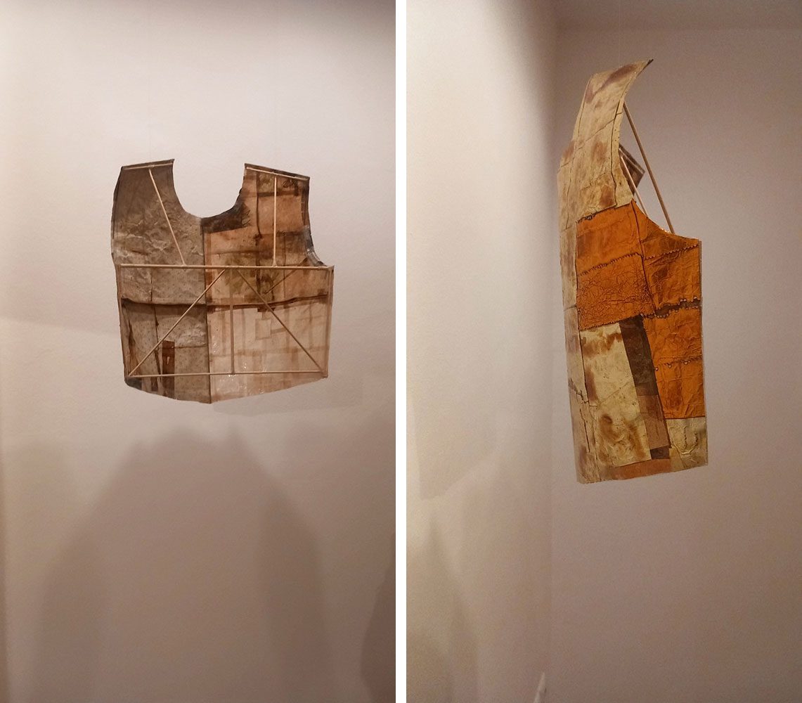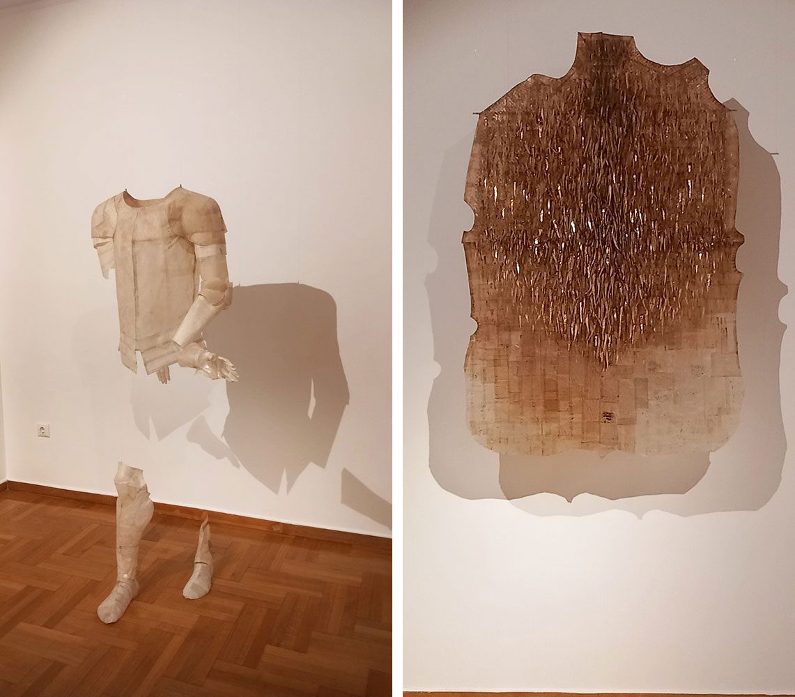 Stand-out pieces include “Inside Out”, “Armor”, “Safety Net” and “Mythological”. The first two works draw inspiration from the shell of the cicada and the armor itself, evoking renewal and transformation. Safety Net acts like an invisible web of protection, while Mythological references the Golden Fleece — a symbol of elusive yet cherished security. In other works, textures recall the snake’s skin or the hedgehog’s quills — archetypes of defence and wisdom revisited with a contemporary, almost mystical sensibility. Podias does more than make objects; he creates environments. The viewer does not merely look — they inhabit, engage in a quiet dialogue with matter.