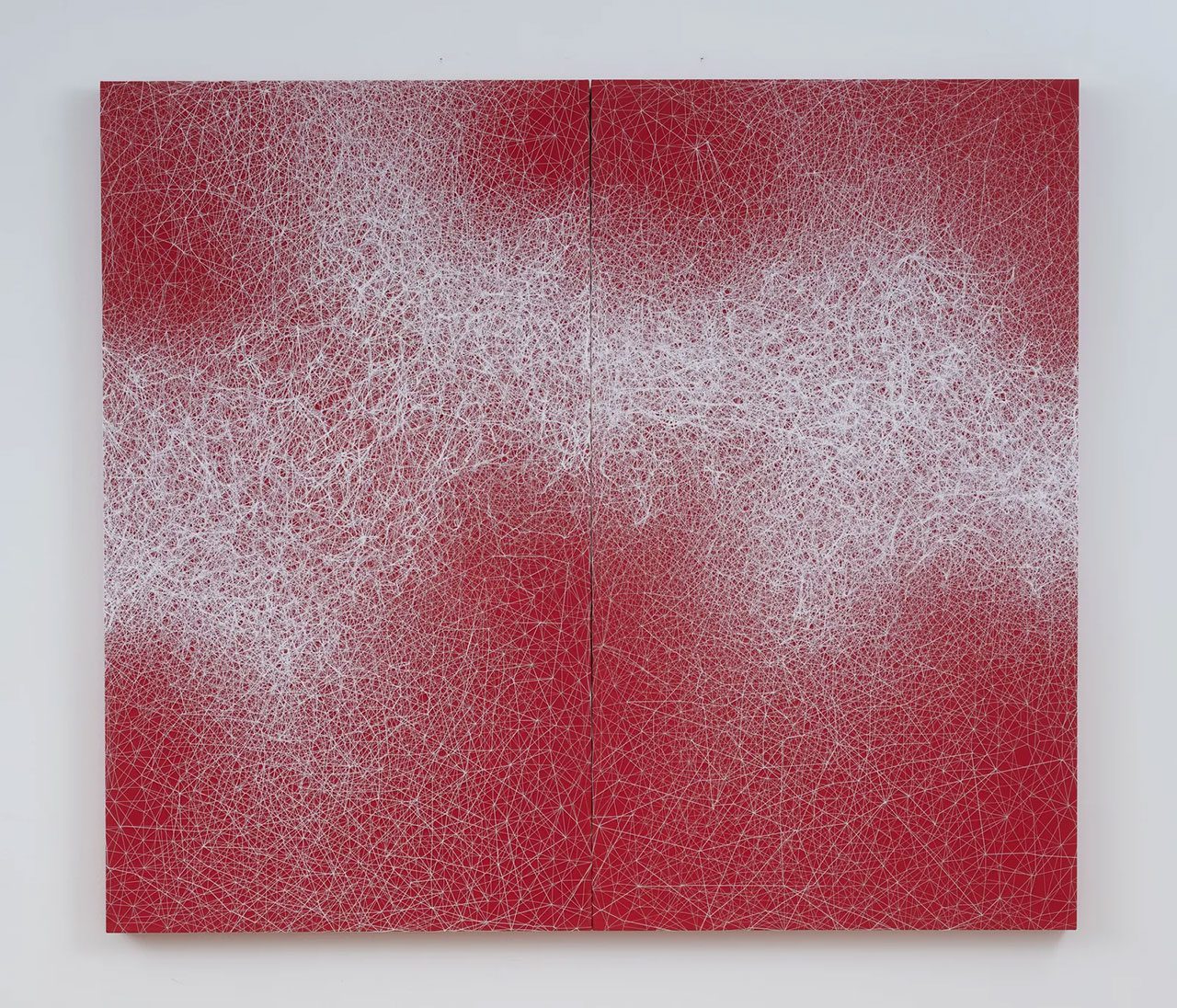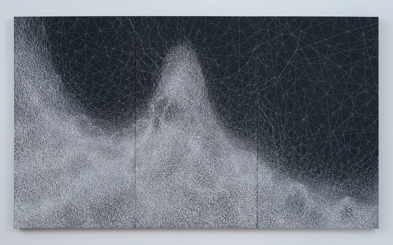 Right: Chiharu Shiota, Connected to the Universe, 2025 Thread on canvas, © Chiharu Shiota, Courtesy the artist and Templon Gallery
