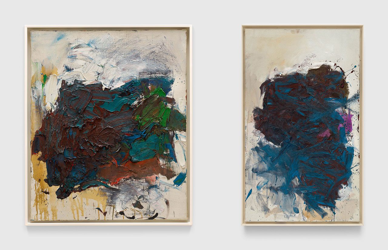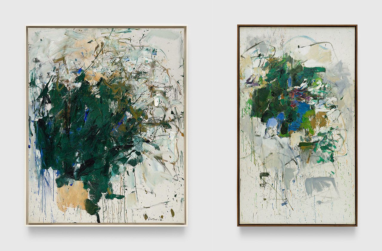 Right: Joan Mitchell, Untitled, c. 1964, Oil on canvas, 63 5/8 x 38 inches (161.6 x 96.5 cm), Framed: 66 3/8 x 40 1/2 inches (168.6 x 102.9 cm), Collection Joan Mitchell Foundation, © Estate of Joan Mitchell