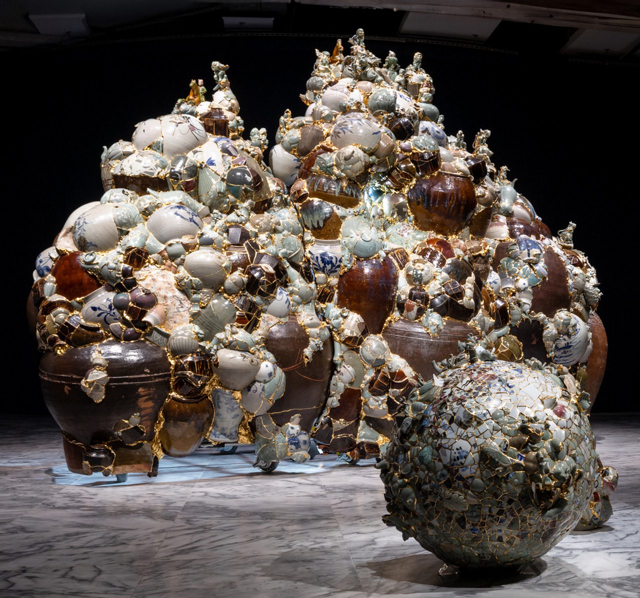 Photo: Edgar Calel, K’obomanik (Gratitude for everything that lights up and turns off before our eyes), 2025, Stones, rope, soil, ceramics, water and digital screens, Dimensions variable, Courtesy of the artist, Mendes Wood DM, Sao Paulo; and Proyectos Ultravioleta, Guatemala City, Commissioned by Taipei Biennial 2025. Image courtesy of Taipei Fine Arts Museum