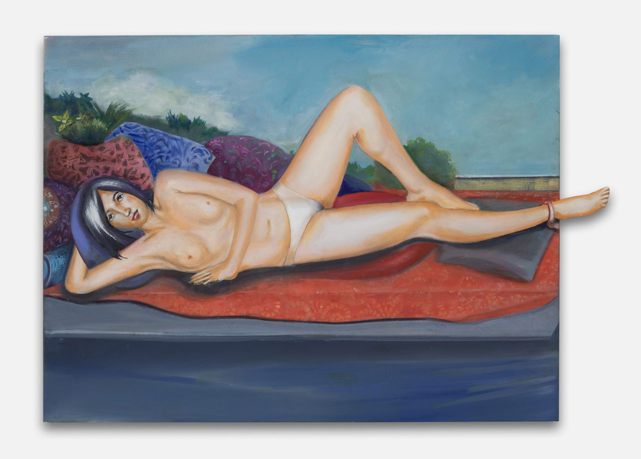 Right: Martial Raysse, Now, 2017, Acrylic on canvas, 209 × 175,5 cm — 82 1/4 × 69 in, © Martial Raysse, Courtesy the artist and Galerie Templon