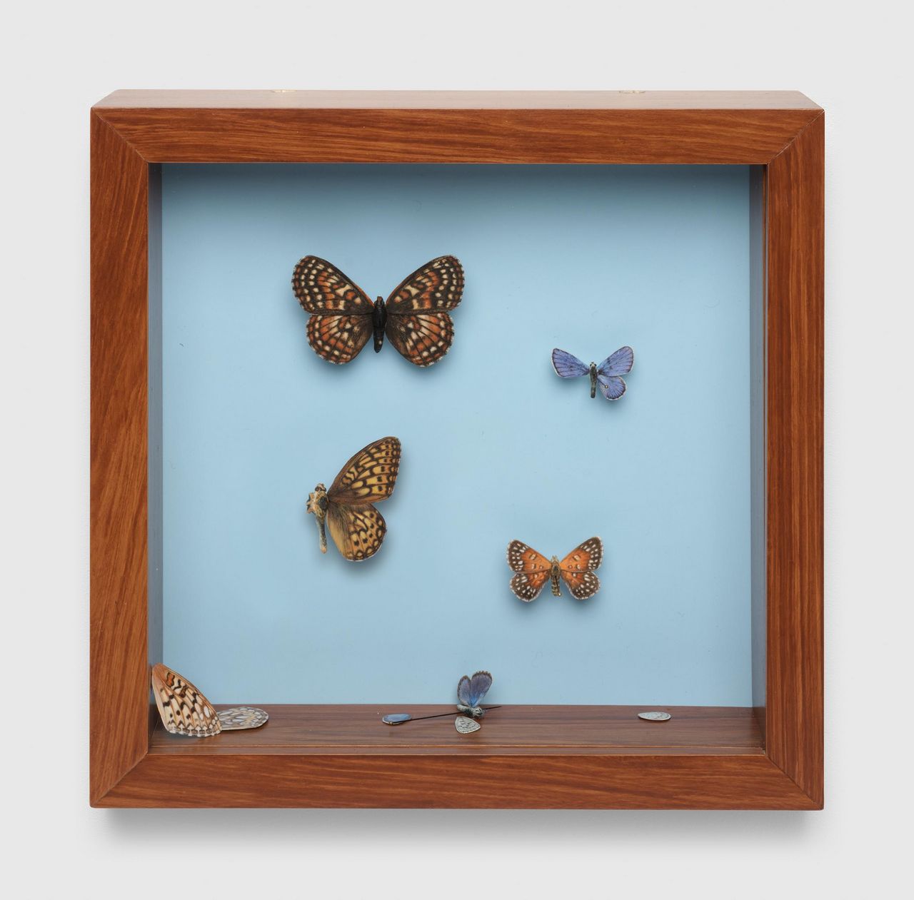 Photo: Elisheva Biernoff, Shadow Box, 2024-2025, Glazed ceramic, acrylic, and plywood in hand-painted wood grain frame, 8 3/4 x 8 3/4 x 2 3/8 inches (22.2 x 22.2 x 6 cm), © Elisheva Biernoff, Courtesy the artist and David Zwirner Gallery
