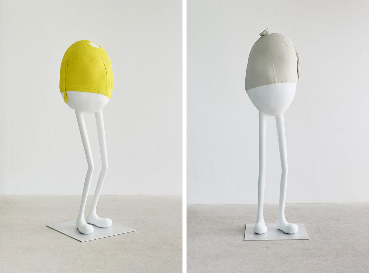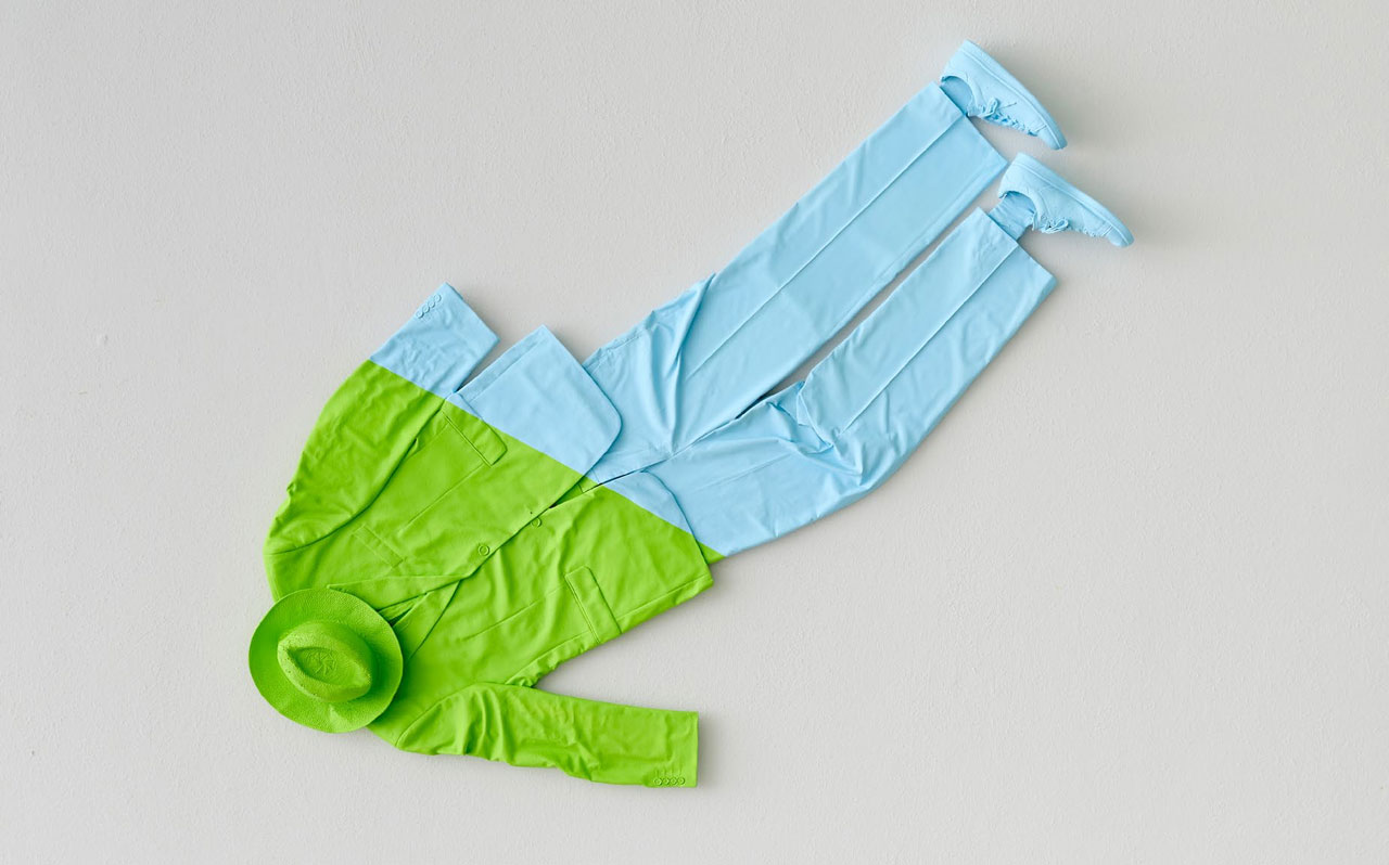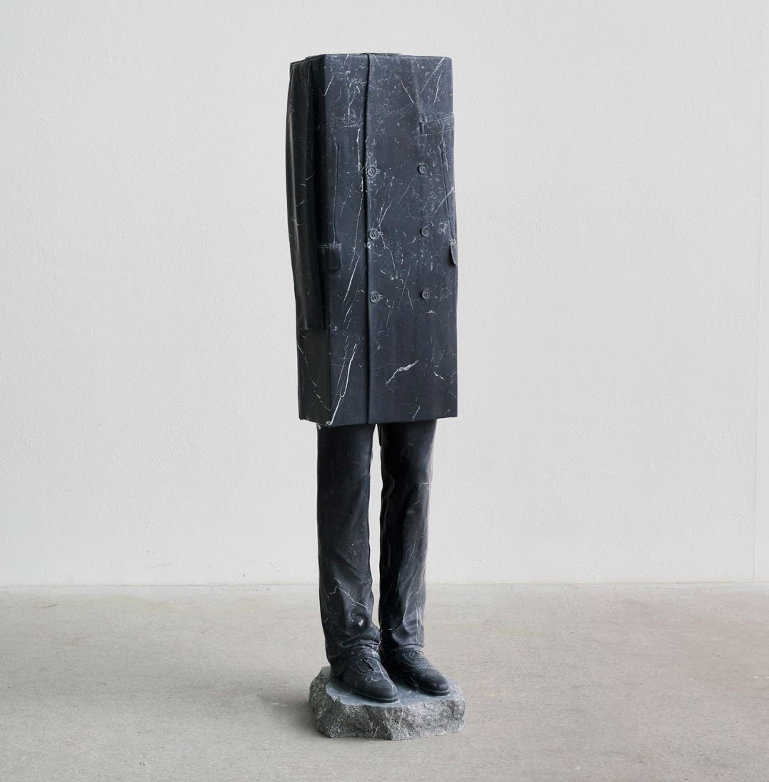 Wurm’s sculptural vocabulary extends to the immaterial. His “Blurred Memories” and “Mind Bubbles” anthropomorphise childhood recollections and thought processes, balancing spindly legs with bulbous forms in a play of proportion between body and mind. The “Box People” (2009–present), cubic figures in formal attire but without heads, interrogate the individual’s role in contemporary society. Clothing, a recurring theme in Wurm’s practice, resurfaces in the “Substitutes” series (2022–present): empty shells of garments cast in aluminium, bronze, or marble. These deflated outfits—collars gaping, stockings pooling—become sculptural skins, echoing classical bronzes and questioning the boundary between body and world.