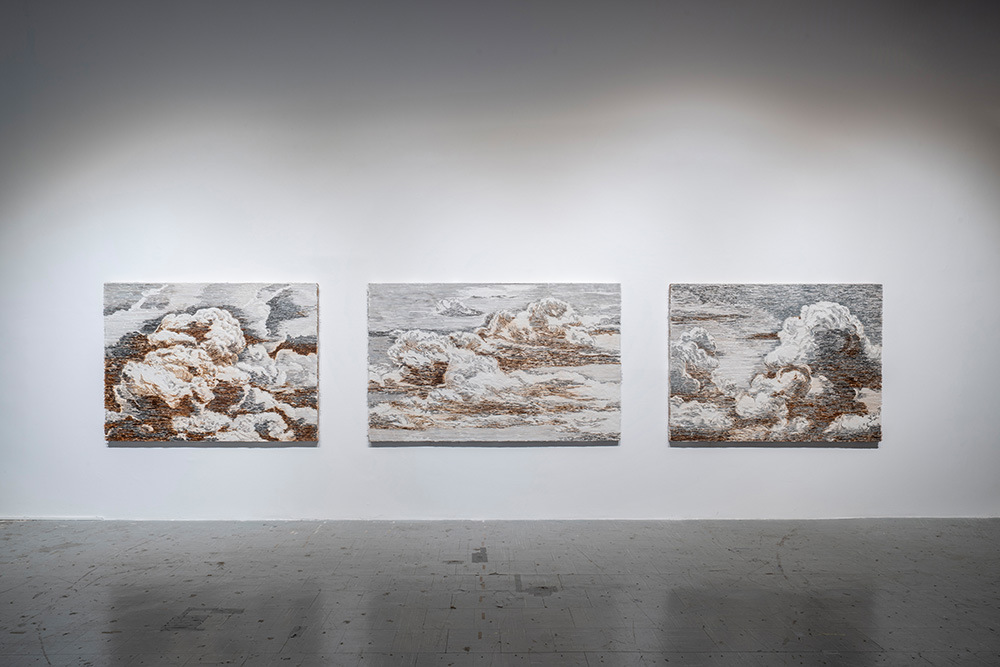 Yoan Capote uses sculpture, painting, installation, photography, and video to create analogies between the symbolic meaning of inanimate objects and the human psyche. He utilizes both traditional and unconventional materials, such as human blood and repurposed mundane objects, while also exploring multisensory possibilities within new media. The found objects he selects are chosen with purpose, such as his “Isla” and “Palangre” series which he fabricated from thousands of hand-wrought fishhooks. Viewed from a distance, the works read as a classic painting of sea meeting sky. It is only upon close examination that the perilous materials become clear, and the oceanic feeling resonating from the idyllic tableaux shifts to something more sinister.