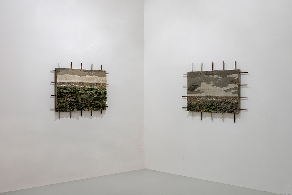 For the first time, this exhibition presents works from the series “Litoral” (2025) landscapes where the horizon almost disappears at the top edge of the painting, and where the artist incorporates sharp reef stones (dogtooth crystals) collected from the Cuban coast. In these seascapes, Capote recreates the perspective of those who have stopped looking toward the horizon, accepting its reef-ridden shore; those who have lost hope for the future and resigned themselves to the present; those who merely wander or try to escape while facing the endless water fading between sharp rocks.