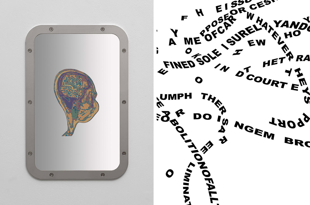 Right: Tsang Kin-Wah. T HE E PLE AND THE P O LE ALONE. 2026. Black vinyl sticker in matte finishing. Dimensions variable. Courtesy of the artist