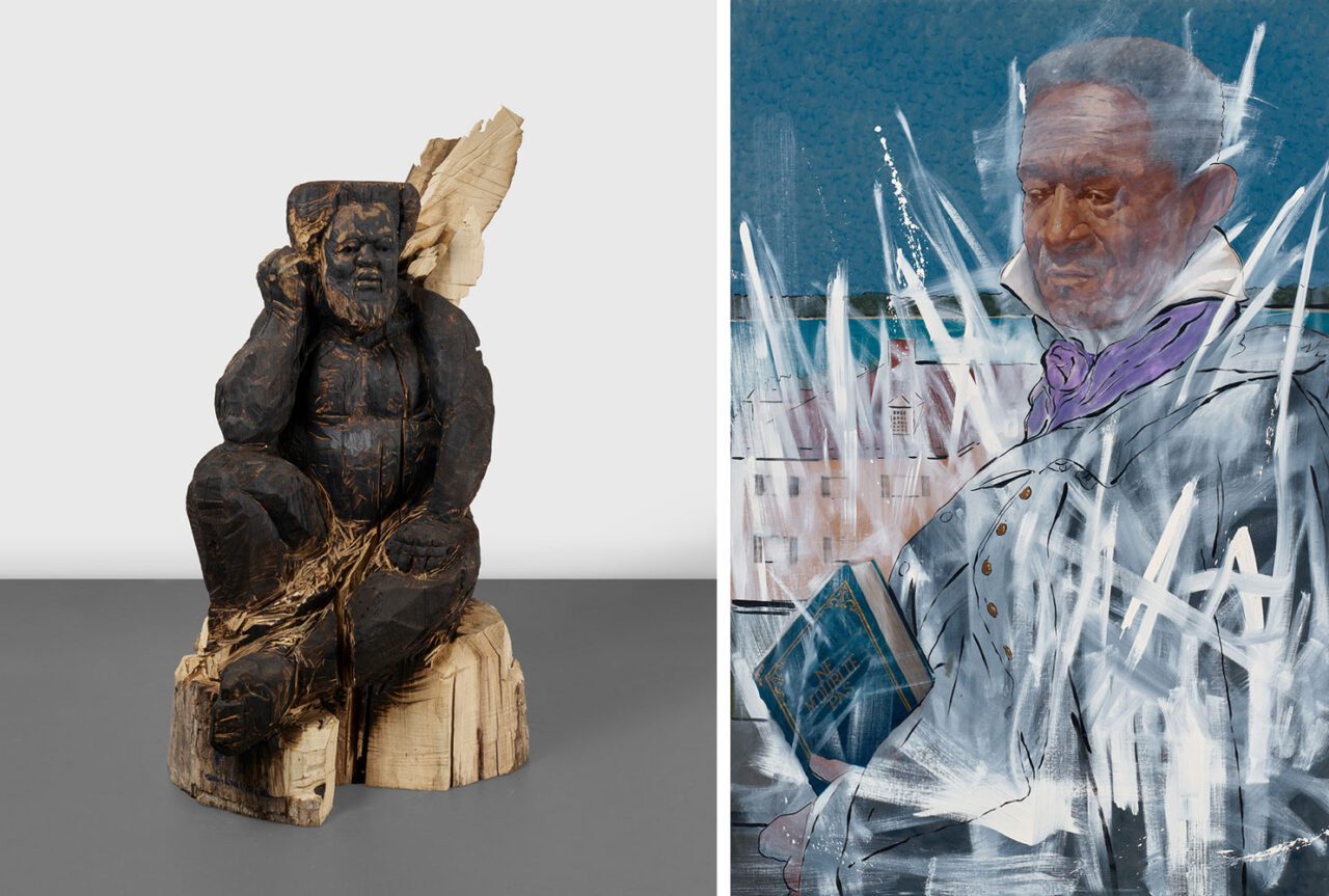 Titus Kaphar’s solo exhibition “The Fire This Time” at Gagosian, Paris presents a compelling new body of work—spanning paintings and hand-carved wood sculptures—that deepens the artist’s longstanding inquiry into how history, power, and representation shape collective memory. In this show, Kaphar revisits and expands the visual and conceptual strategies that have defined his practice, foregrounding figures and narratives historically marginalized or omitted from dominant American histories.