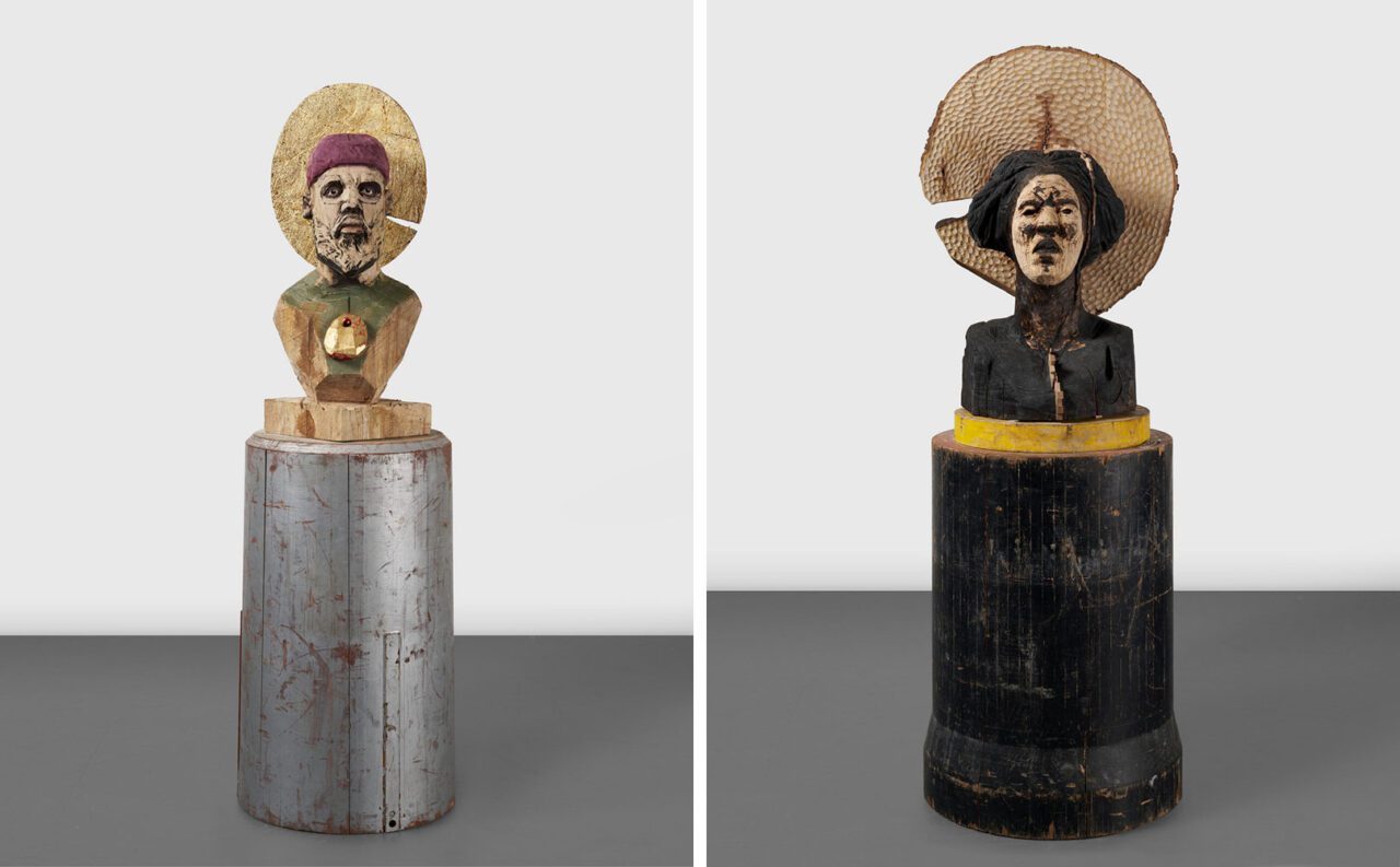 Parallel to the canvases, “The Fire This Time “debuts a major series of hand-hewn wood sculptures portraying friends and family members—figures Kaphar refers to as “saints” who have sustained him personally and creatively. Drawing on influences from Byzantine and Renaissance Italian art and the impact of a transformative visit to Florence, each sculpture is charred to both seal the wood and ornament its surface. This blackened finish resonates with Kaphar’s use of tar in earlier paintings, forging a material continuity across media while infusing the sculptures with a tactile sense of endurance and sanctity.