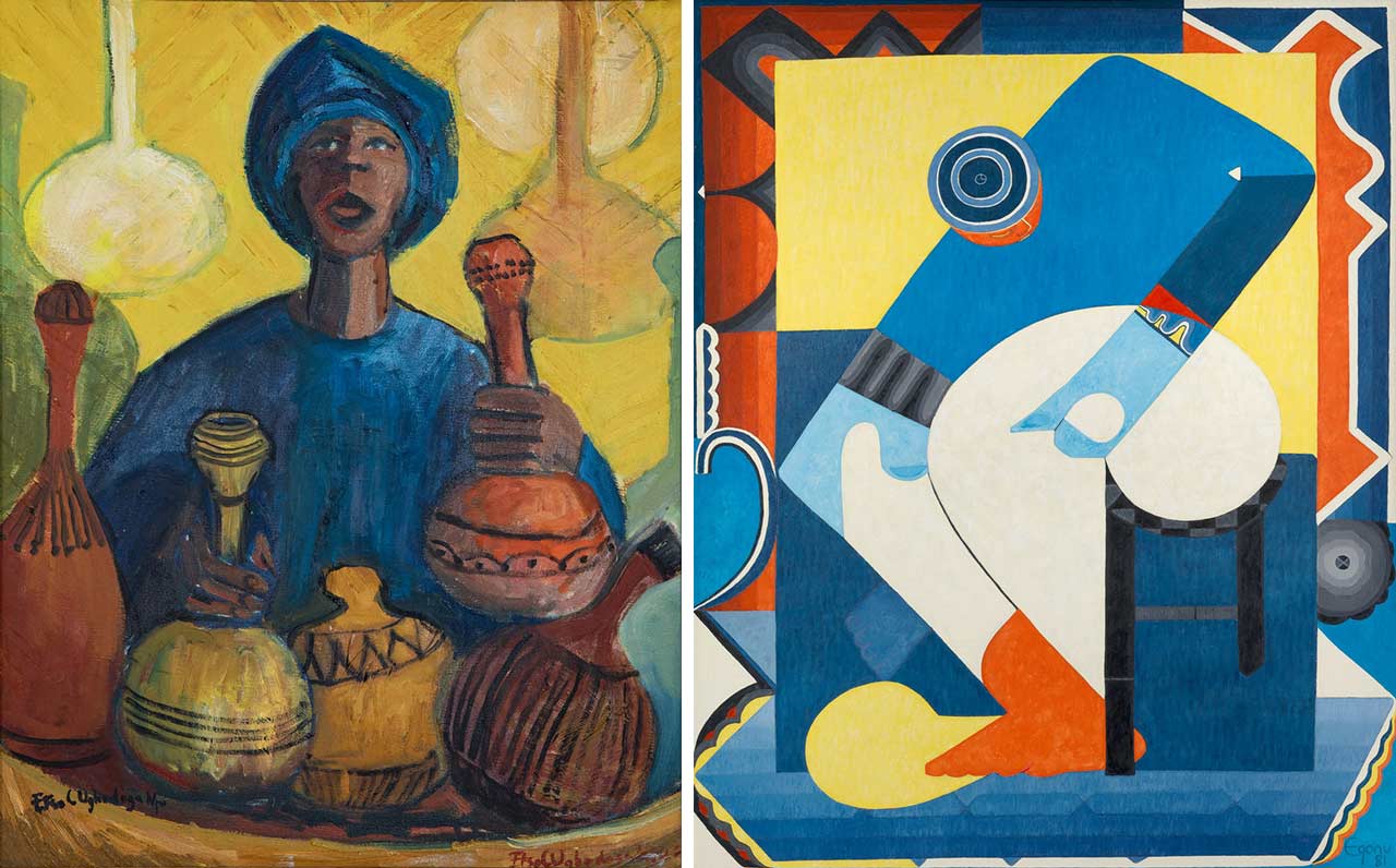 Set against the backdrop of cultural and artistic rebellion, the exhibition “Nigerian Modernism” celebrates the achievements of Nigerian artists working before and after the decade of national independence from British colonial rule in 1960. The exhibition tells the story of artistic networks which spanned Zaria, Ibadan, Lagos and Enugu, as well as London, Munich and Paris. Through groups like the Zaria Art Society and Mbari Artists’ and Writers’ Club, they fused Nigerian, African and European techniques and traditions to create vibrant, multidimensional works (Part I).