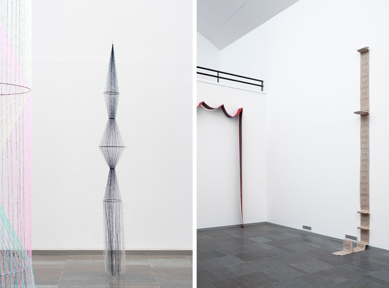 Several works connect traditional craft to modernist abstraction. Céline Condorelli, for example, draws on postcolonial artistic pedagogy and collaborates with Moroccan women weavers, linking historical pattern traditions with digital reinterpretations. Damien Ajavon engages with West African weaving techniques rooted in centuries-old ritual practices, while Hera Büyüktaşcıyan explores memory and architecture through layered sculptural forms referencing both ancient stones and modern concrete landscapes.
