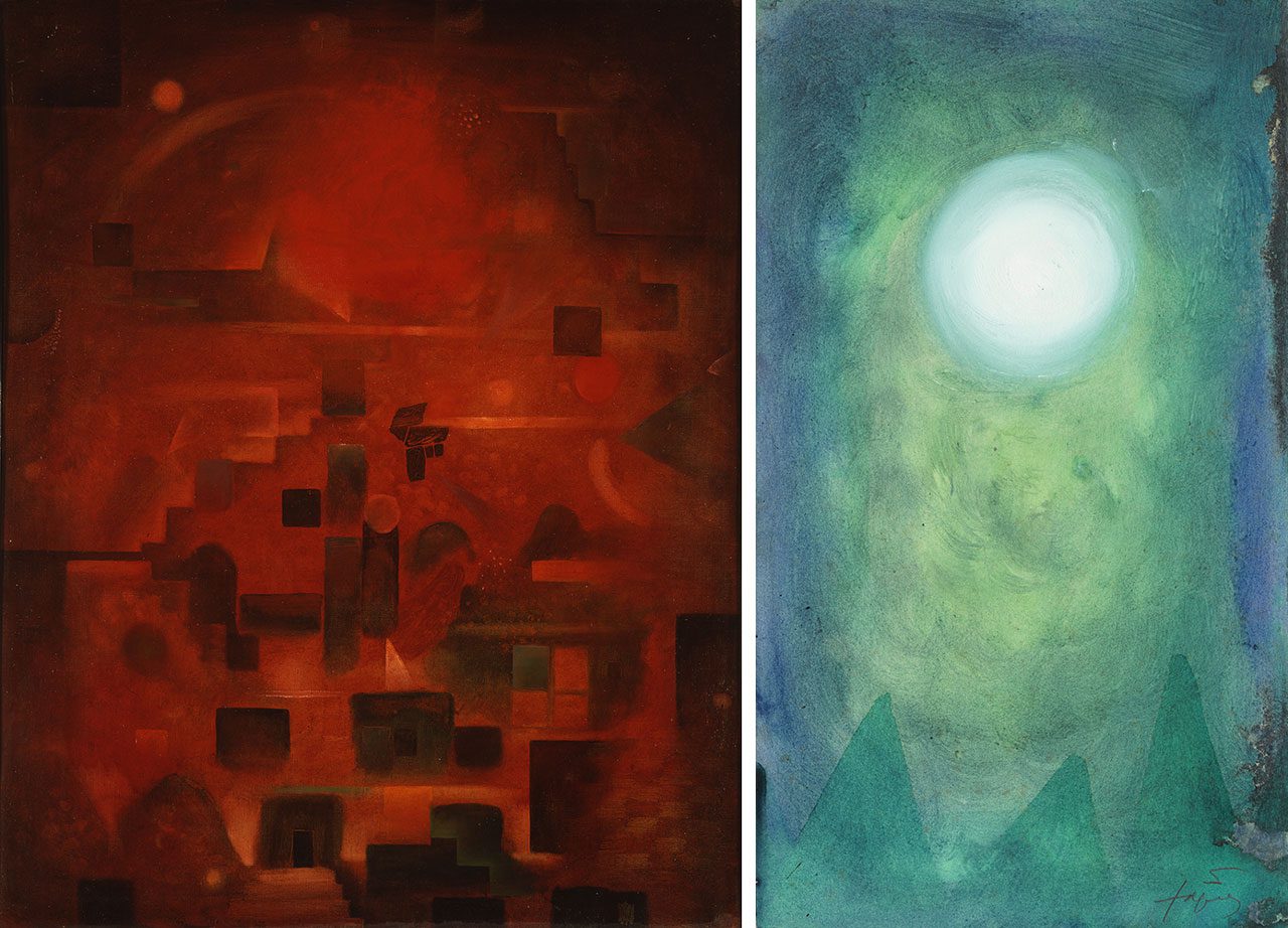 The catalogue text by the poet and critic Juan Eduardo Cirlot framed the exhibition within a metaphysical and symbolic register, while figures such as Joan Brossa and Joan-Josep Tharrats participated in shaping the intellectual climate around the show. Works including “El foc encantat de Farefa” (1949), “Bodegó de Sirefala” (1950), and “Composició / A, desert. B, solitude” (1950)—the latter from the Museu Carmen Thyssen Barcelona—are presented as they originally were. The installation foregrounds the density and opacity of the surfaces, already anticipating the material gravitas that would define the decade.
