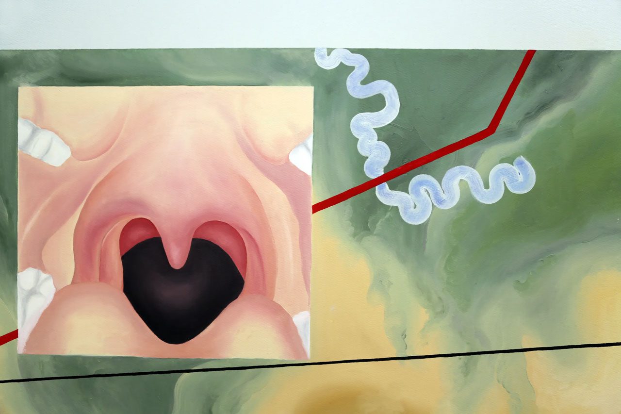 Across painting and video, the exhibition reflects Naim’s sustained investigation into how meaning is produced, transmitted, and interpreted. The works approach language not as a fixed structure but as a mutable system—one in which symbols, gestures, and sounds continually shift between clarity and ambiguity. By moving between image and voice, surface and body, the exhibition reveals language as an interface through which perception, identity, and experience are negotiated rather than simply expressed.