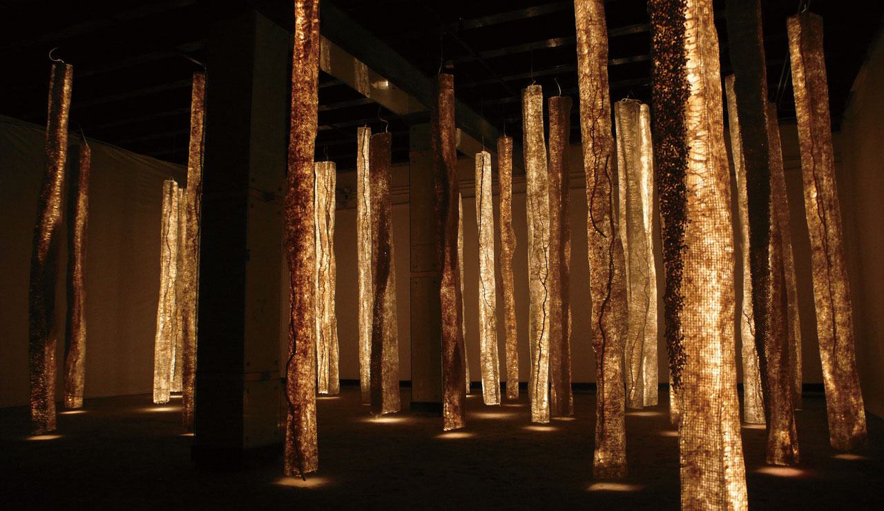 Shi Hui’s practice is grounded in natural and traditional materials—bamboo, hemp, cotton, and especially paper. Works such as “Knot,” “Pillars,” and “Old Wall” demonstrate her sensitivity to structure and decay, permanence and fragility. Paper pulp becomes sculptural, evoking erosion, memory, and time.