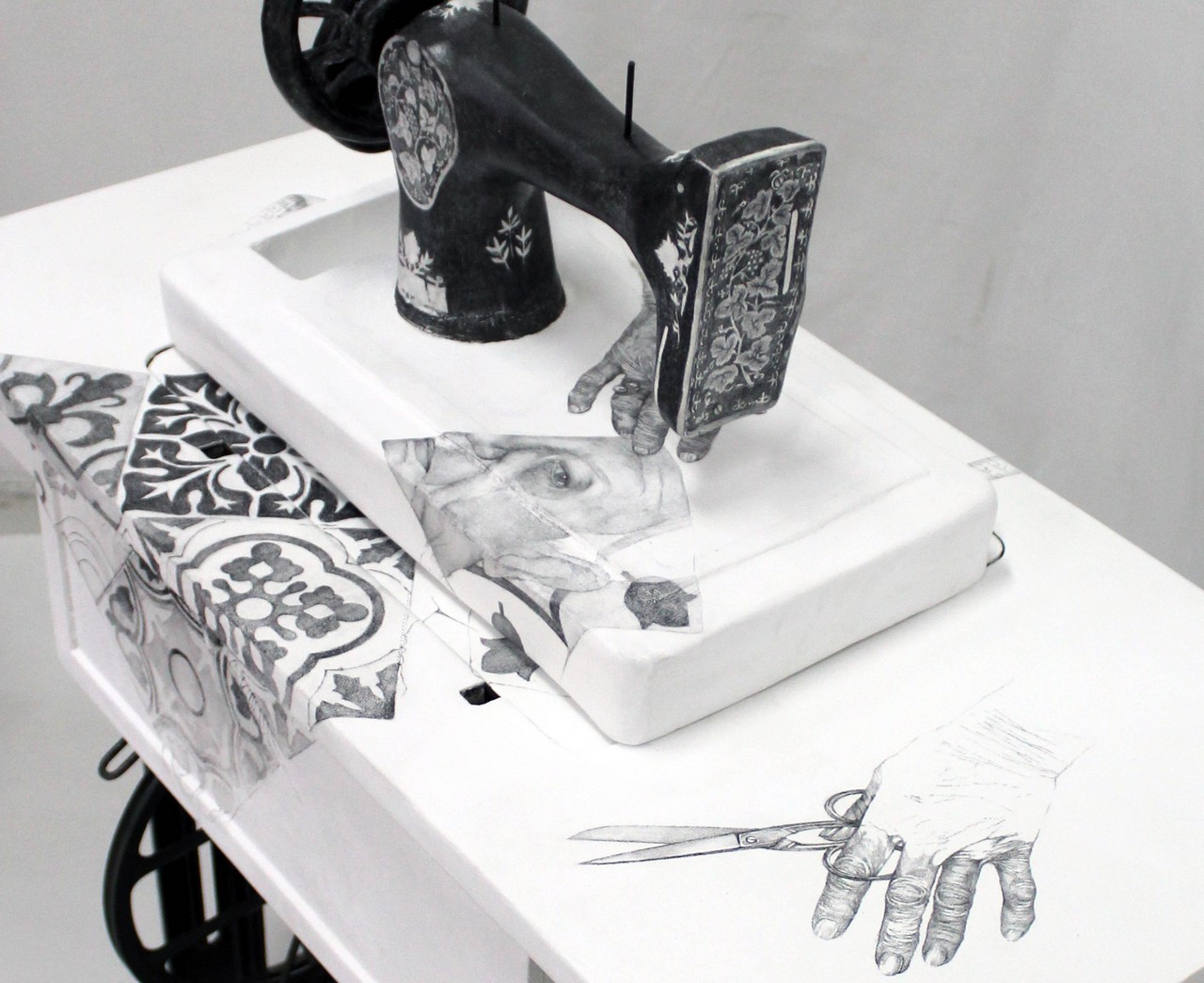 Pencil has a dual nature. It functions both as a means of expression and as a symbol. It is a simple, everyday, almost “ordinary” material, yet at the same time extremely sensitive, since one touch is enough to destroy what you have been working on for hours. Both paper and pencil are chosen with an awareness of fragility. Through their use, I aim to transport the viewer to a past era, when photographs and television were still black and white. Pencil, as an elemental medium, leaves its trace against objects we often perceive as stable, revealing that permanence contains fractures, history, and decay—and yet, through these fissures, memory persists.