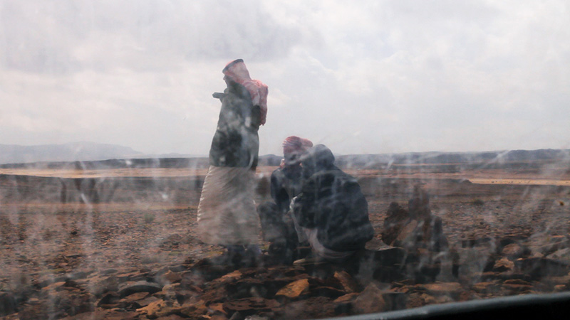 Shadi Habib Allah’s video “Daga’a” (2015) is on presentation at the Green Art Gallery In Dubai. The work was commissioned y for the New Museum Triennial in 2015, since then has been shown at festivals around Europe, but this will be its first appearance in the Middle East. The film takes us on an unlikely journey across the heavily militarised Sinai Peninsula in Egypt with a group of Bedouins. In most countries in the Middle East the Bedouin have no land rights, only users’ privileges, and it is especially true for Egypt. Since the mid-80s, the Bedouin who held desirable coastal property have lost control of much of their land as it was sold by the Egyptian government to hotel operators. Egypt did not see it as the land that belongs to Bedouin tribes, but rather as a state property. After the Egyptian Revolution of 2011, the Sinai Bedouin were given an unofficial autonomy due to political instability inside the country. But Egyptian authorities traditionally view the Bedouin cross-border ties with Israel, Jordan and Saudi Arabia with suspicion. Due the unemployment the Bedouin tribes living along the border between Egypt and Israel are involved in inter-border smuggling. Shot by Habib Allah over many months, the video charts multiple trips in which the artist passed through one Bedouin network and into another, as if he himself were a smuggled good. From one perspective, his voyage can be seen as a straightforward business transaction, for the required sum, and with the proper access, he is smuggled from the southern Sinai desert deep into its more remote and neglected areas. From another vantage point, it presents the potent machinations of political invisibility, as the Bedouins leverage their ongoing legal marginalisation and deep familiarity with the desert to defy military surveillance and thrive, albeit illegally, by locating routes through a terrain that otherwise seems open and unmarked. In the work, the Bedouins are presented anonymously, with their faces blurred both to protect them and so as to not break the social contract of the journey. Habib Allah’s palpable lack of agency and personal mobility throughout the process, which is amplified by rapid cuts within the video meant to mirror the quick, tactical routes of the smuggling process, finds parallels in broader legal regulations on immigration that restrict movement on the basis of national conflicts.