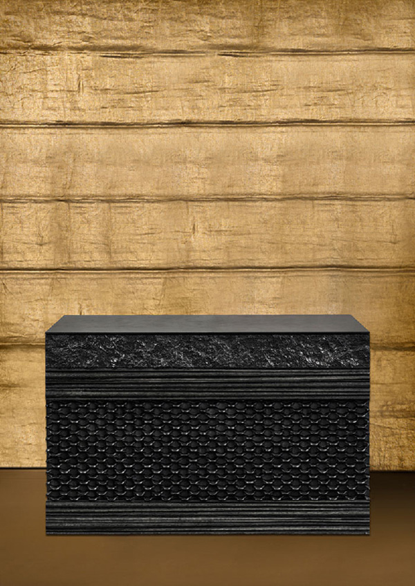 Peter Marino in his solo exhibition “Fire and Water” at Gagosian Gallery in London presents a new series of sculpted bronze boxes. This series of cast bronze objects is Marino’s third, following two previous series produced in 2012 and 2014. The new boxes are finished in a variety of patination techniques: gilded, silvered, and blackened. In his new series of sculpted bronze boxes, Marino reveals his deep connection to the traditions of bronze metal work. In “Fire and Water”, 6 different boxes in limited editions feature designs inspired by organic and mythical forms such as water ripples, dragon scales and rough stone. The boxes, which are functional storage objects, and can take up to a year to produce, are handmade at the Atelier St. Jacques, part of the Fondation de Coubertin, the French national institution for crafts, manual work, and trades. As a passionate collector, Marino has also developed an extensive repository of bronzes. With an emphasis on Renaissance works, as well as French and Italian bronzes of the High Baroque, his collection includes masterpieces by some of the greatest exponents of the medium, including Giambologna, Pietro Tacca, Ferdinando Tacca, Giovanni Battista Foggini, Robert Le Lorrain, and Corneille van Clève. The refinement and intense emotion in many of the bronze statuettes in his collection is in contrast with the fluent solidity of Marino’s own creations. Marino’s first bronze boxes were shown at the 26th Biennale des Antiquaires in Paris in 2012, and featured 8 designs made in cast bronze and leather. The second series from 2014 featured 9 designs based on tree bark, reed, stone and other patterns.