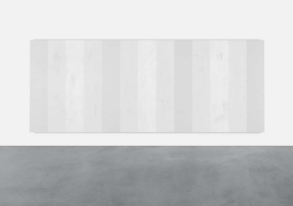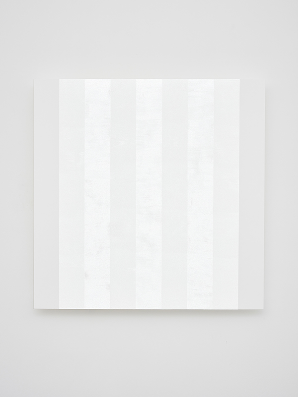 Mary Corse in her solo exhibition at Lisson Gallery in London presents ten works spanning from 2003 to 2018, including seven new works created specifically for the exhibition. The presentation include a selection from Corse’s “White Black White” and “White Inner Band” painting series, and a lightbox composed of argon and Plexiglas. In 1963 Mary Corse received a BFA from the University of California, Santa Barbara, where she studied psychology, and in 1968 an MFA from the Chouinard Art Institute, Los Angeles, where she studied painting, philosophy, and Tibetan Buddhism. In the mid-1960s, she produced white monochromes on shaped canvases and Plexiglas constructions illuminated by fluorescent light bulbs. One such work, “Untitled (Space + Electric Light)” (1968/2017), that is on presentation in the exhibition is a glowing cube made from Plexiglas, neon, and tesla, a high-voltage, low-current energy system. In 1968, she began incorporating glass microspheres, tiny prismatic beads often embedded into highway dividers for their reflective properties, into her paintings and blended them with different shades of acrylic, a technique that still forms the basis of her work. Corse is often considered part of the Light and Space movement, an otherwise male-dominated movement that developed in Southern California in the 1960s and includes Larry Bell, Robert Irwin, James Turrell, and Doug Wheeler. However, Corse maintains that, at least in the 1960s, she was neither part of the group nor influenced by their work. Nonetheless, this set of loosely affiliated artists worked with the medium of light, using reflective or transparent surfaces like resin or Plexiglas, or specific materials or technologies developed for the car or aviation industries. In the late 1970s and early 1980s, Corse briefly switched her production to large paintings with heavy slabs in dark clay, but soon returned to painting and incorporating microspheres into the medium. Her technique transforms opaque and blank Minimalist canvases into surfaces on which hard-edged stripes or blocks and gestural brushstrokes seem to appear and disappear. The visual instability of Corse’s canvases underscores the artist’s conviction that perception is the most important aesthetic act and that these seeming accidents of perception are more interesting than accidental gestures by the artist on the canvas. This position subtly undermines the tenets of Minimalism. While that style tends to refute gestural works, Corse’s canvases incorporate both gesture and chance into an otherwise Minimalist framework.