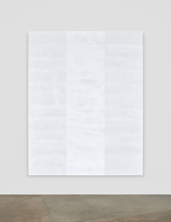 Mary Corse is associated with the 1960s Light & Space Movement, and is primarily known for her minimalist, monochromatic paintings, which explore the relationship between materiality and perception. Since the mid-1960s, Corse has developed an innovative technique that involves mixing acrylic paint with tiny glass beads commonly used in the white lines of lane dividers on highways and painting vertical bands onto the canvas. These fields have an illuminating effect, so that as viewers move in front of the painting, oscillating bands of varying color and texture are exposed, darkening and brightening before their eyes.