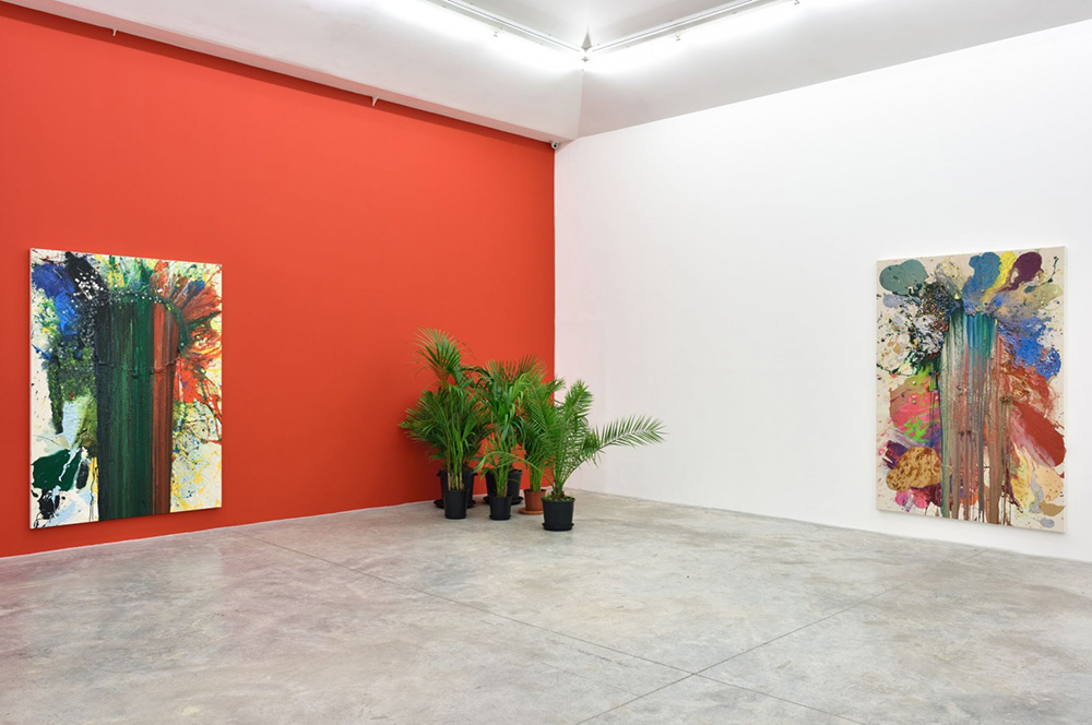 Leaning on the Fluxus Movement of the 1960s, John M Armleder with Patrick Lucchini and Claude Rychner founded in 1969 the Groupe Ecart in Geneva. Located at 6 rue Plantamour, the collective had an artist-run space which in addition to hosting the events of the collective had since 1973 a Gallery, a specialized bookstore and a publishing house all named Ecart. For the collective, the goal was to master each stage of the production of an artistic work to guarantee its freedom and independence. The artist has since the end of the 1960’s created a polymorphic body of work that spans several different mediums, ranging from painting and sculpture to design, performance, and installation. John M Armleder’s artworks that are on presentation at Almine Rech Gallery are different from those of the past, but also different from his paintings, which we first met at the exhibition “Everything that’s interesting is new” (20/1-20/4/96) in Athens, with works of Dakis Joannou Collection. Armleder gained international recognition with his “Furniture Sculpture” series from 1979, bringing together iconic examples of design and paintings to reflect on the trivialization of the artwork as an decorative accessory. The difference in his last exhibition at Almine Rech Gallery lies both in the way he is using the objects and in his paintings, which, while he began as a minimalist, abstract conceptual artist, he evolved through an intense expressionism, until his last series, where his paintings are overflowing with color, energy and liveliness, while the objects like the plants are independent in space, operating autonomously and complementary at the same time (!)–Efi Michalarou