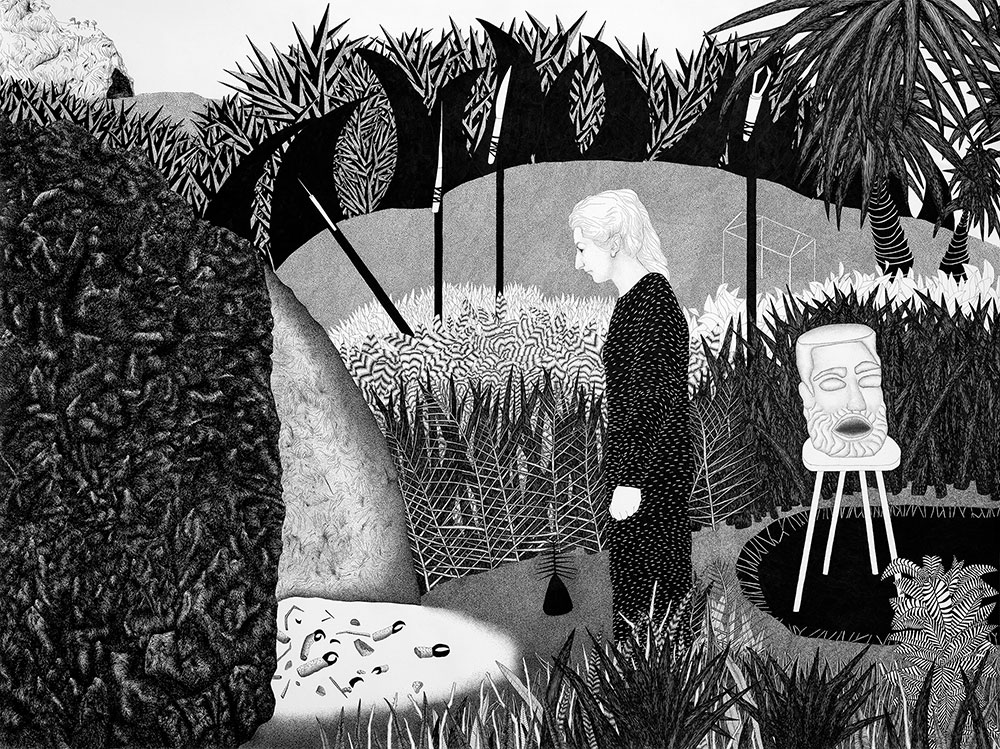 Aspasia Krystalla deals creatively with the human figure in its environment of creatural, technical and architectural elements. In large-format black-and-white drawings, she combines fragmentary pictorial elements that she uses as symbols for a narrative story. She creates metaphorical spaces by depicting the elements drawn with fine lines in a cosmos that shifts between reality and dream. It is common knowledge that results are determined by the means employed -a knowledge that is usually underestimated for the sake of image and its lecture. Being aware of this, the artist, in her solo exhibition “Unfamiliar Eden” creates stronger illusions and spatial interconnections between the image, the material and its lecture, through thoughts that spring up and grow from the centre. It is precisely there where one should settle in order to perceive what grows. Info: Bendana|Pinel Art Contemporain, 4 rue du Perche, Paris, Duration: 12/1-16/3/19, Days & Hours: Tue-Sat 11:00-19:00, www.bendana-pinel.com
