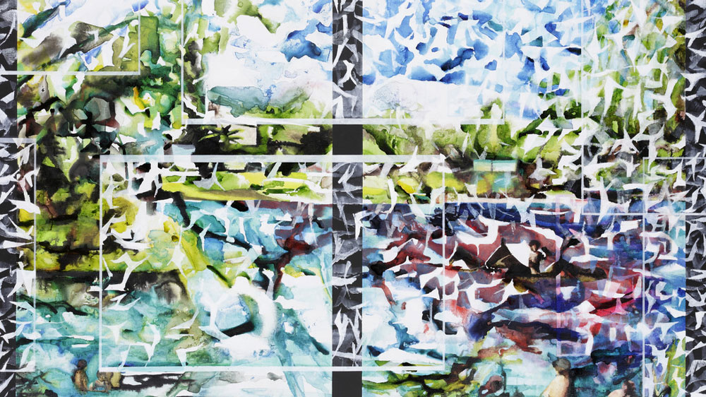 Carole Benzaken’s solo exhibition “Là-bas…Toi”, occupies both gallery spaces of Galerie Nathalie Obadia. At the Bourg-Tibourg gallery, Carole Benzaken presents the series “Greffes”, eight paintings of identical format, in which the chromatic variations shift between acid green and the sweetest of pinks. The subject of the work is hidden by the paint, to the point that it is impossible to recognize it, concealed as it is by the fluctuations in speed. A few vertical lines alone mark the frenetic horizontality, punctuating the artist’s unfettered brushstrokes. Similarly, the series “Au réveil, il était midi”, presented at the Cloître Saint-Merri gallery, challenges our understanding. While we feel like we can perceive trees, houses, walls or a snowy landscape, the succession of frames like windows of hypertextual screens that are superimposed on the crumpled bruises of white paint (teeming with forgotten letters or swarms of birds) foils any attempt at reasoned identification. Info: Galerie Nathalie Obadia, Rue du bourg Tibourg, 18 rue du Bourg-Tibourg, Paris, Duration: 12/1-23/2/19, Days & Hours: Tue-Sat 11:00-19:00 & Galerie Nathalie Obadia, 3 rue du Cloître Saint-Merri, Paris, Duration: 12/1-23/2/19, Days & Hours: Mon-Sat 11:00-19:00, www.nathalieobadia.com