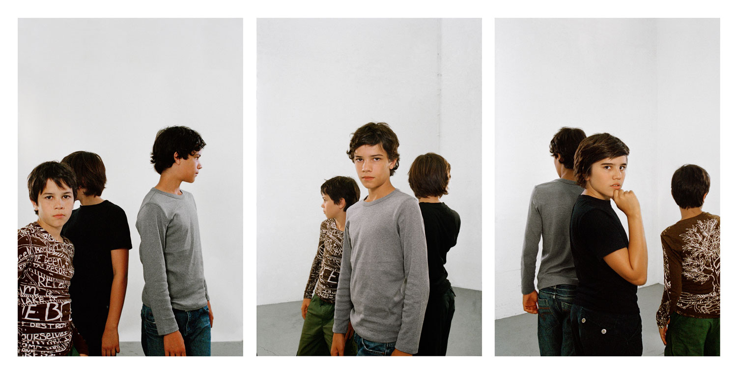 Barbra Probst’s solo exhibition “The Moment In Space” is her first in Paris. Her work is based on her early years of study at the Akademie der Bildenden Künste in Munich, where she studied sculpture. “We were modeling with clay every day with a nude model posing for us. We would create a three-dimensional image of our model as naturalistically as possible. The nude model would stand on a turntable that we would turn every 10 minutes by about 30 or 40 degrees, so that each student could see every possible angle of the model”. As a photographer, Barbara Probst sculpts time. And she imposes a grid of spatial reading on our perception of the image. In contrast to the time-lapse photography of Eadweard Muybridge, where sequential images scientifically analyse movement to build a clear narrative, Probst’s fragmentation of the instant challenges our faith in the veracity of any single image, as well as the potential of photography to adequately represent reality. In her work the moment is multiplied into several views constitutes an exposure, a constellation of perspectives that induces multifaceted, sometimes contradictory readings of the image. Barbara Probst is not interested so much in what is represented as in the way it is represented. Using gestures, faces and objects that are as neutral as possible, she minimises the narrative character of each view and seeks a more open, more ambiguous rendering. She has always been intrigued by the 1960s writers and filmmakers who broke with classical narrative, like Alain Robbe-Grillet and Jean-Luc Godard. “Their way of storytelling was to go against the expectations of the reader or viewer by creating cracks and gaps in the story or by unexpectedly changing the perspective. They treated the narrative not unlike a cubist painter treated space…”. The titles of Barbara Probst’s works hint at a forensic enquiry: date, location and precise time are carefully recorded, pinpointing the exact moment captured and apparently confirming the photograph’s status as irrefutable documentary proof of an event. As viewers we find ourselves in the unnatural position of being able to apprehend the same instant from multiple perspectives, to experience time as spatial rather than linear. Constant oscillations between viewpoints prevent us from automatically identifying with the singular position of the photographer, keeping us on the move as we explore these frozen moments and attempt to synthesize the individual images into a comprehensive account of the event. The lurching switches between modes and styles in Probst’s scenes are counter-balanced by her subtle – but no less unsettling – intimate double portrait works. Identically shot with only a few degrees difference in camera position, this slight shift is enough to induce a quiet vibration in perception, to once again throw into question our own standpoint as viewers.