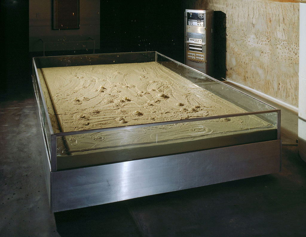 The exhibition “Mud Muses – A Rant About Technology” takes its title from an installation by Robert Rauschenberg and an essay by science fiction writer Ursula K. Le Guin. “Mud Muse”, Robert Rauschenberg’s performative sculpture from 1968-71, in which nearly 4,000 kilos of bentonite mud is activated from below by sound waves, is back at Moderna Museet. In the exhibition the sculpture is joined by a constellation of works that were either produced specifically for the exhibition or created over the past fifty years of technological history, at points in time when the relationship between art and technology has taken a new direction. In 2004, the American science-fiction author Ursula K Le Guin wrote an essay titled “A Rant About Technology”. In the text, Le Guin delivers a poignant definition: “Technology is the active human interface with the material world”. This open-ended understanding of the idea of technology undoes its preordained essence of being perpetually and exclusively modern. In the exhibition, technology assumes other guises and meanings in the encounter with art. Our senses, along with our world views, are challenged, as in Branko Petrović’s vertiginous cybernetic diagrams originally created for the UN environmental conference in Stockholm in 1972. For political reasons, they were not shown here then, and his works are finally presented in Sweden with a delay of half a century. To examine the spirit of intelligent machines, Jenna Sutela connects lava lamp heads with psychedelic magma to a machine learning program that looks for patterns, signs and meaning in the random movements of the coloured goo. Anna Sjödahl’s “Centraldatorn i Sundsvall”, an oil painting from 1978, is no less paranoid: it portrays a computer constructed to store data on all Swedish citizens. In accordance with the 1970s techno-scepticism, the mainframe in Anna Sjödahl’s painting is presented as a veritable totemic presence, watching over the population. The interaction between art and technology is a reflection of the time when it took place. Charlotte Johannesson created satirical and punk tapestries in the 1960s and ‘70s but exchanged her loom for a personal computer in 1978. She noted a similarity between the two machines: “The computer had 239 pixels horizontally and 191 pixels vertically, and that corresponded exactly to what I had in my loom when weaving” she explains. In the series “A Curriculum on the Fabrication of Clouds” (2017-19), one of the new projects developed for the exhibition, Lucy Siyao Liu traces the prehistory of the digital cloud back to artistic and scientific depictions of clouds from the early 19th and 20th Centuries. By demonstrating that human models and dynamic systems are historically and environmentally conditioned, Curriculum liberates the cloud from its contemporary meaning of data infrastructure. The exibition combines a scintillatingly wide spectrum of visual practices. From Suzanne Treister’s “Time Travelling With Rosalind Brodsky” (1995-97), where the avatar Brodsky uses her ability to go back in time to change the course of history, to Ian Cheng’s “BOB” (2019), a giant animated snake-like AI creature that interacts with the audience via an app. Before the visitors’ eyes, “BOB” acts and reacts to things that happen – but only if visitors to the show succeed in finding the wormhole into BOB’s parallel universe. The patriarchal technological order is also dealt with in the exhibition. In the installation “Undaddy Mainframe” (2014), the Melbourne-based duo Soda_Jerk both celebrates and expands the playful cyber-feminist approach to technology as being gendered. On her own and as a member of the Cultural Capital Cooperative, Sidsel Meineche Hansen explores a feminist concept of social reproduction and how its conditions have changed in a digital world order that transforms workers into isolated, autonomous production units: Here, the artist is the exemplary freelancer and informal worker who must constantly prove her value in order to get work.