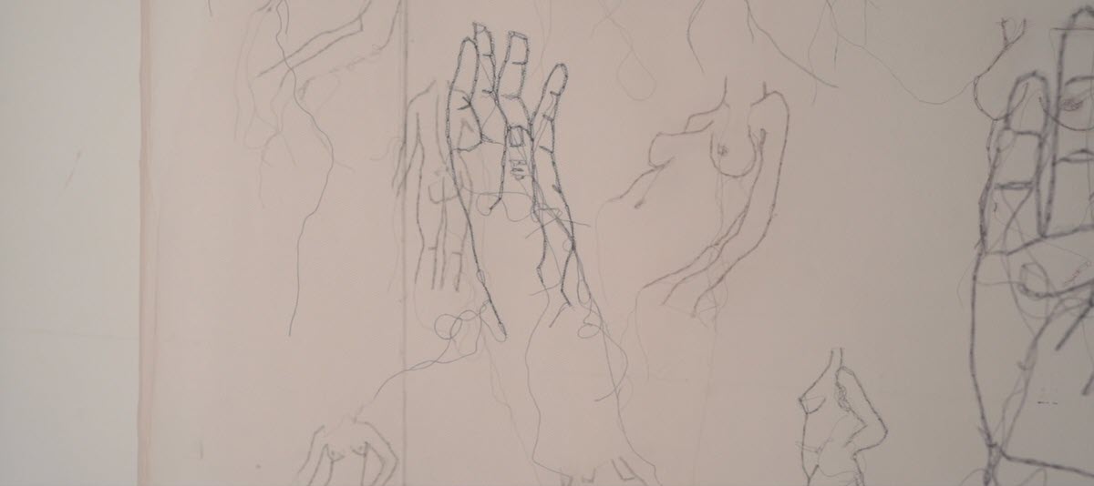 Aikaterini Kanakaki is the youngest artist of the exhibition, with the dynamism and sensitivity of her age, approaches embroidery as a tool of her era, without forgetting or marginalizing the sensitivity and fragility of the medium and its nature. Tulle, which stereotypically is associated with marriage, in her work functions as a veil-curtain, where being and appearance reside. Female bodies and arms emerge through the transparency, presenting a world that resides and is inherent between: tangible and intangible… eroticism and sexuality… imagination and reality.